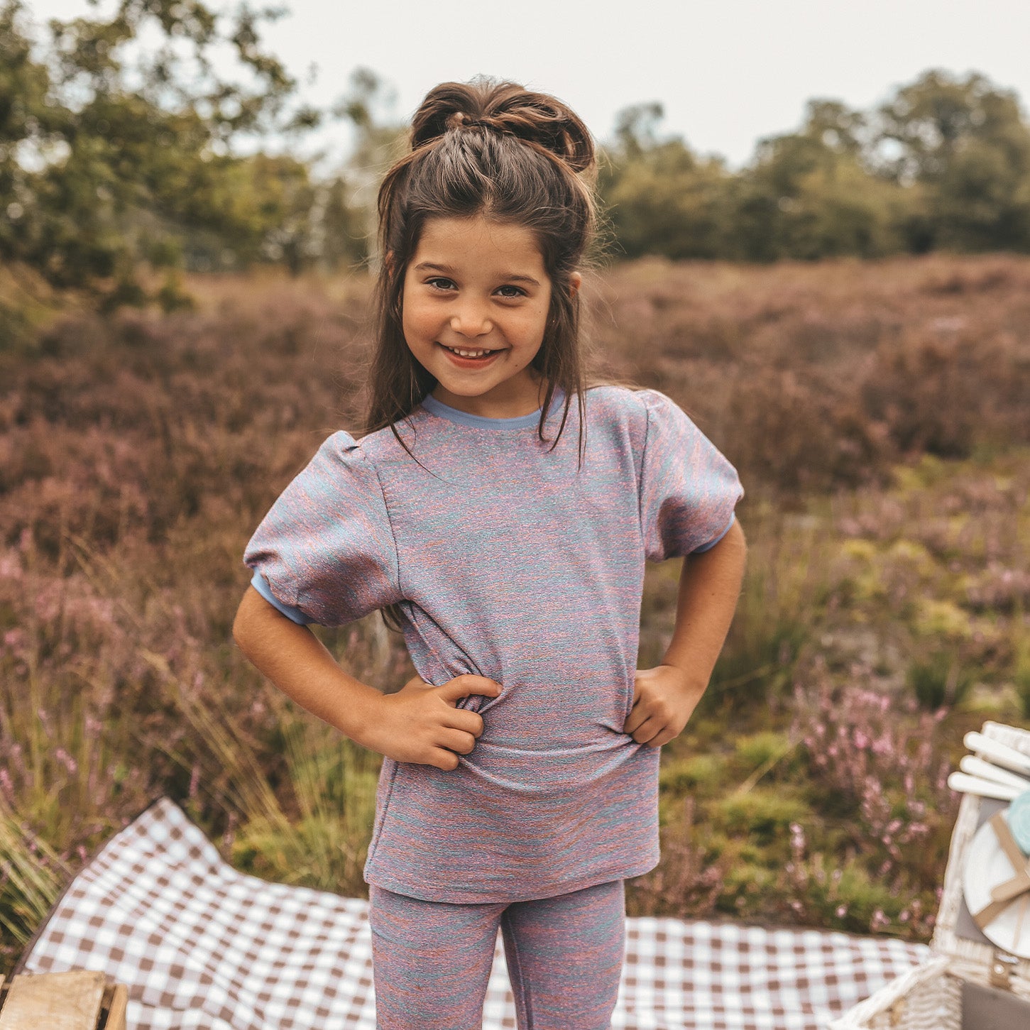 De pofmouwen geven de top een speelse en modieuze flair, perfect voor zonnige dagen en speciale gelegenheden. Deze top is ideaal te combineren met de Glitter Flared Legging voor een complete co-ord look, of een eenvoudig wit shirt voor een meer casual en basic outfit.