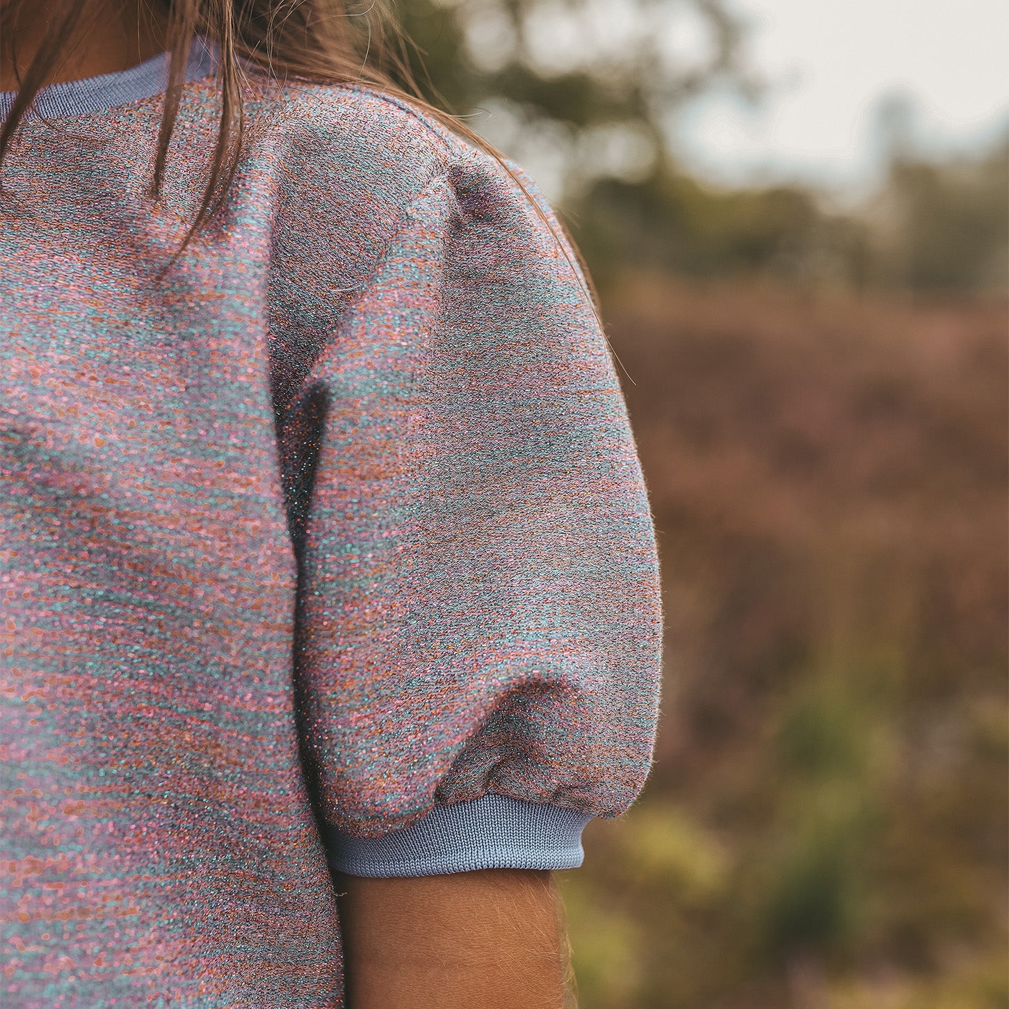 * Deze glitter puff sleeve top heeft een subtiele glitter.