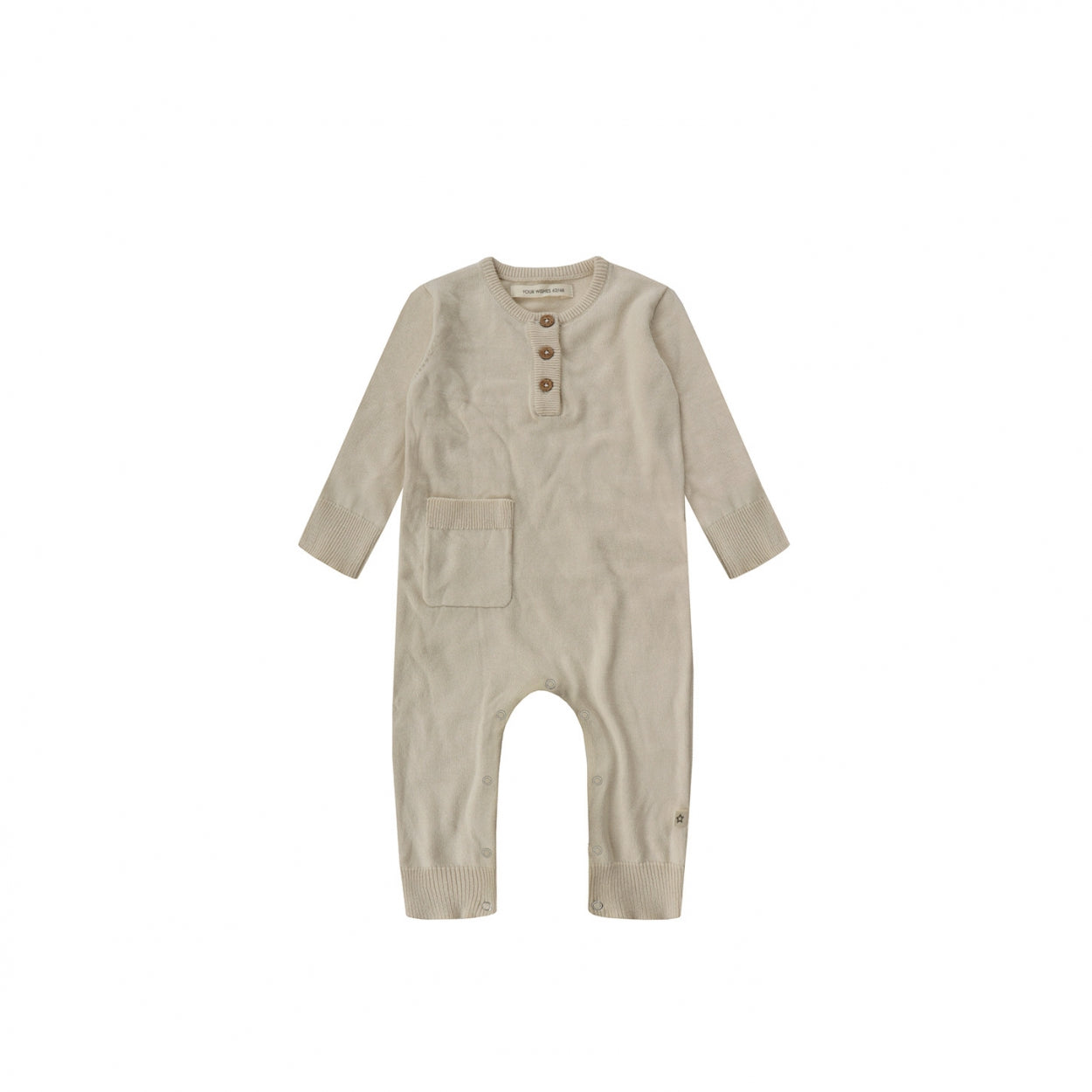 Dieser fein gestrickte Spielanzug ist ein bequemer Artikel für Ihr Neugeborenes. Der Playsuit hat einen Knopfverschluss auf der Vorderseite, eine aufgesetzte Tasche und Druckknöpfe zwischen den Beinen, was das An- und Ausziehen erleichtert.