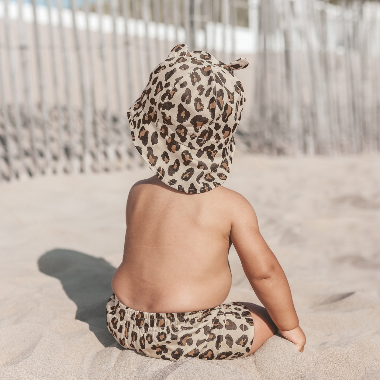 De populaire leopard print mag ook binnen deze collectie niet ontbreken! Dit zonnehoedje heeft schattige berenoortjes. Ideaal om je kindje te beschermen tegen de zon.