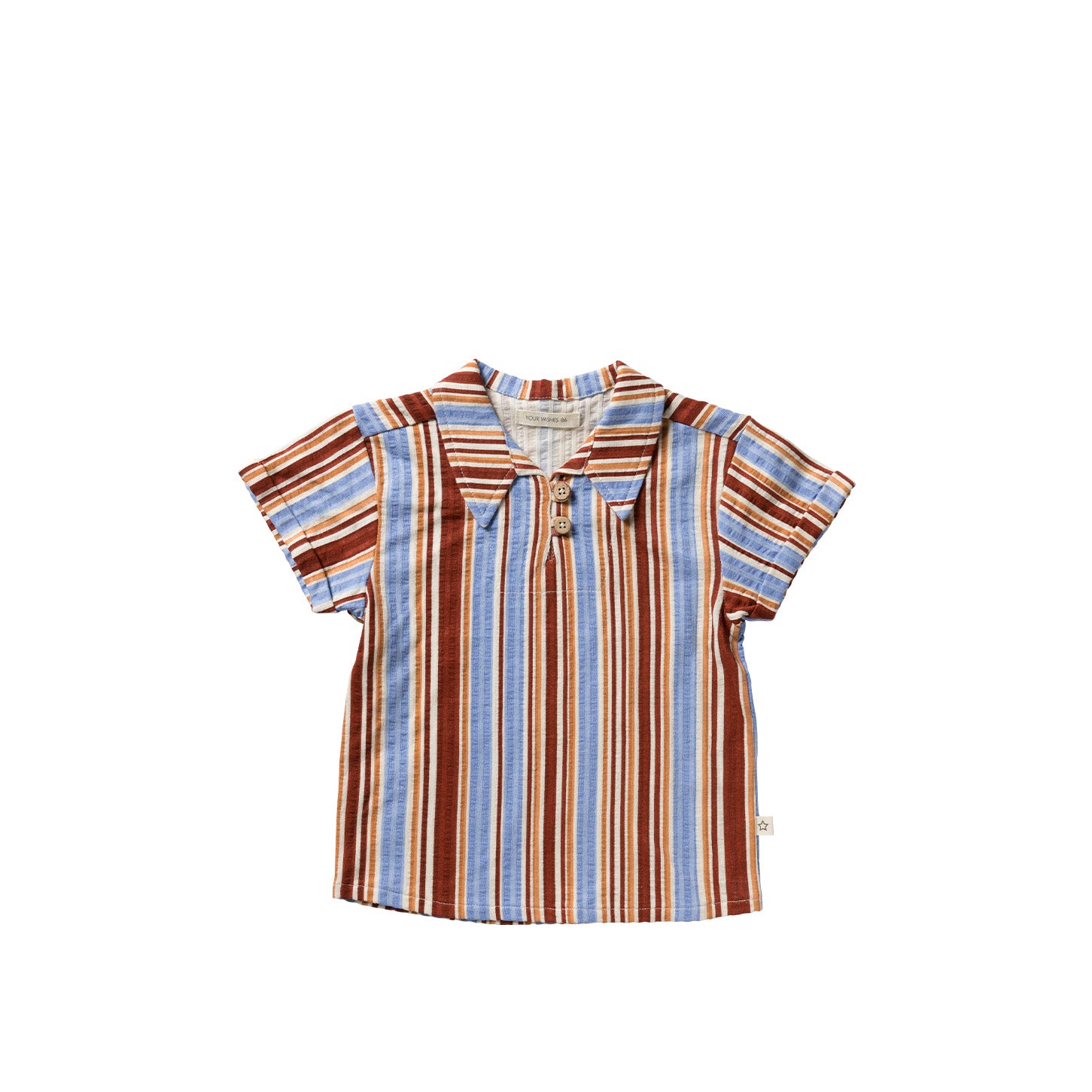 Met loops voor de kopen en een leuke omslag bij de mouwen, zorgt dit shirt voor een verfijnde en functionele stijl die helemaal bij Your Wishes past. Combineer de Listra Tropic Shirt met de Listra Summer short voor een perfecte, co-ord zomeroutfit of match met de Worker Jeans of Denim Shorts. Bestel nu in maten 80 tot en met 140 en laat je jongen stralen in dit stoere en comfortabele shirt!