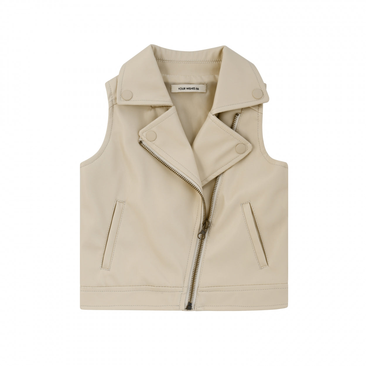 Ein Gilet aus weichem PU-Leder in einem warmen Weißton. Der Biker-Stil verleiht der Weste einen robusten Look. Sie hat einen asymmetrischen Reißverschluss auf der Vorderseite und 2 Seitentaschen.