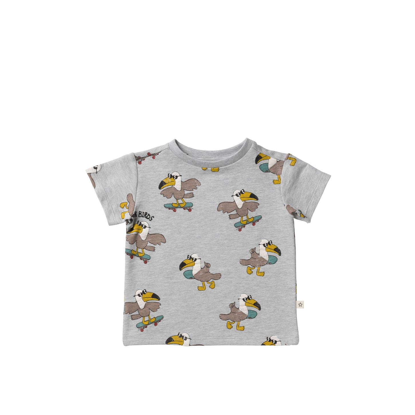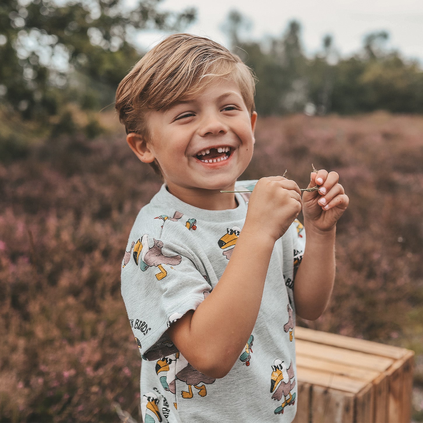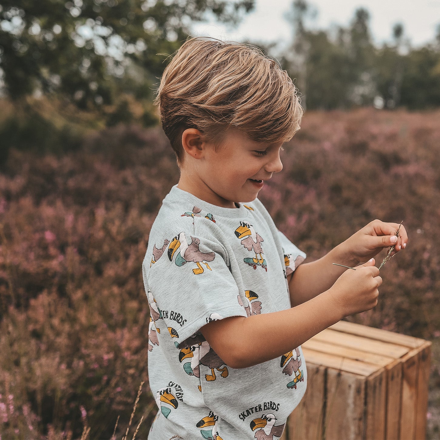 De Skatebirds Relaxed Tee van Your Wishes is de ideale keuze voor jonge avonturiers deze lente en zomer. Dit T-shirt uit de Sugar Rush collectie heeft een opvallende mélange grijstint en een stoere print van een skateboardende vogel, perfect voor elke jonge skater die houdt van een speelse en coole look.