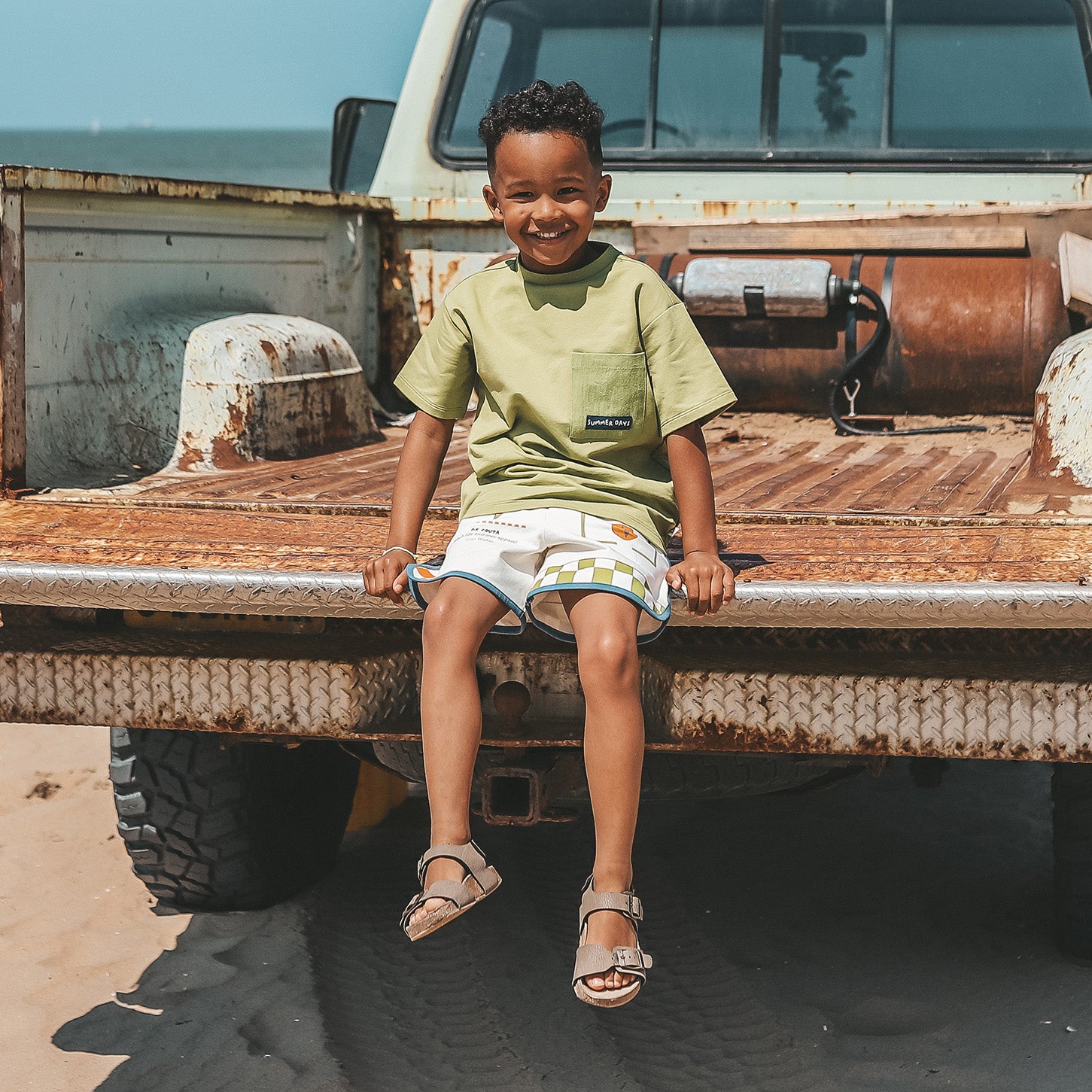 Het design combineert stoere woven details op de zakken met een speelse look, wat het T-shirt een uniek en eigentijds karakter geeft. De toevoeging van artworks zorgt voor een extra speelse en robuuste uitstraling. Dit T-shirt is ideaal te combineren met onze Rio Relaxed Shorts of de Solid Cargo Shorts, voor een leuke co-ord outfit die perfect is voor zonnige avonturen.