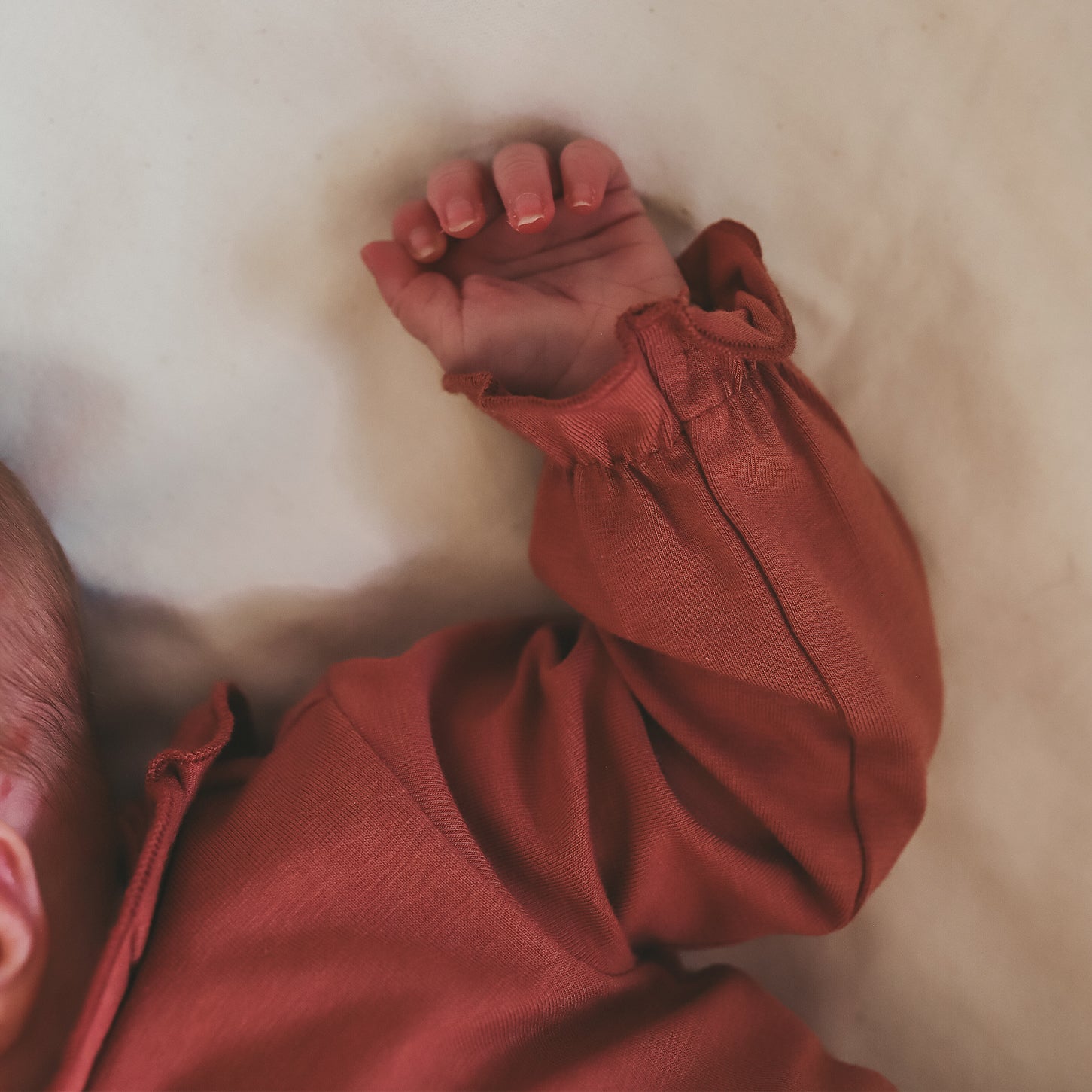 Geef jouw kleintje een stijlvolle look met de Ruffle Longsleeve, verkrijgbaar in maat 50 tot 74. Dit longsleeve shirt met lange mouwen is gemaakt van een zachte mix van katoen en modal, wat zorgt voor een heerlijk comfortabel gevoel op de huid. De ademende stof neemt tot wel 50% meer vocht top dan gewone stoffen, zodat je kindje minder snel gaat zweten of plakken. De ruffle details aan de mouwuiteinden en halslijn geven het shirtje een romantisch gevoel. Dankzij de drie drukknoopjes op de rug wordt de halsopening makkelijk groter, waardoor het aan- en uitkleden ook bij de allerkleinsten soepel verloopt. Combineer deze Ruffle longsleeve met de Candy Fitted Pants (link product) en de Lace Socks (link product) voor een schattige en complete outfit waar je niet omheen kunt!