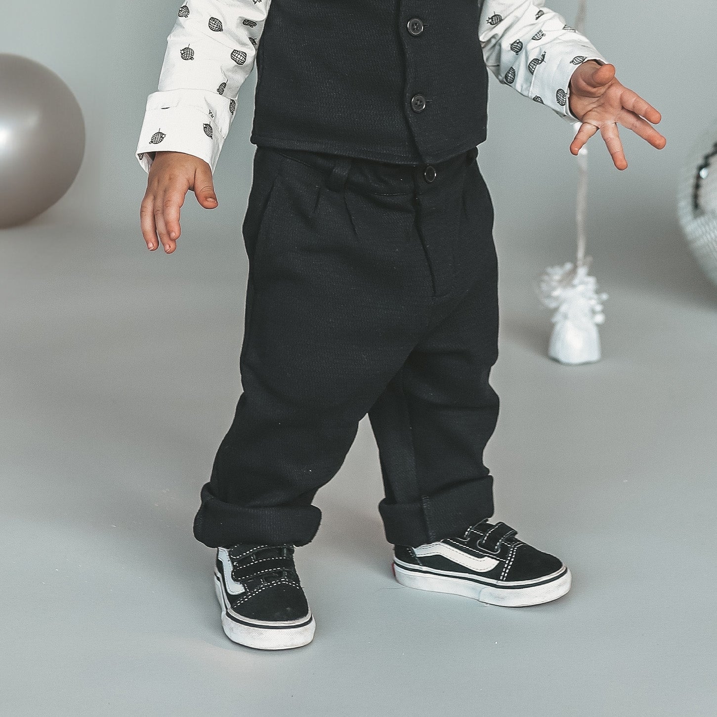 *Unser Model Kenai ist 1,5 Jahre alt und trägt Größe 86 und unser Model James ist 5 Jahre alt und trägt Größe 116.
