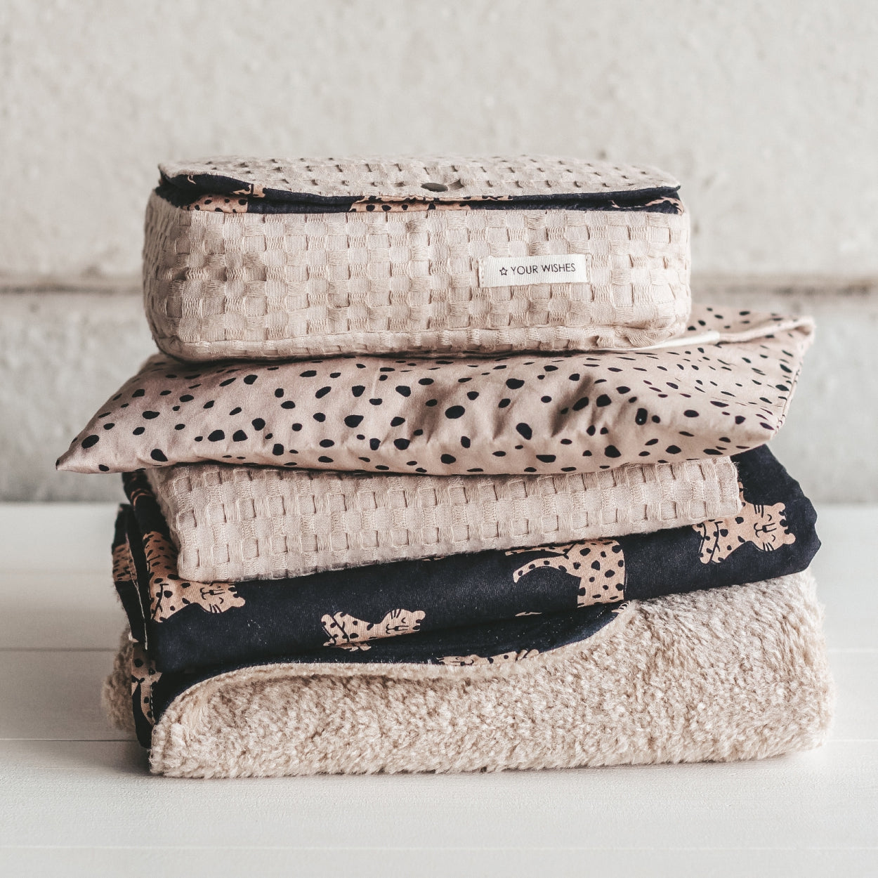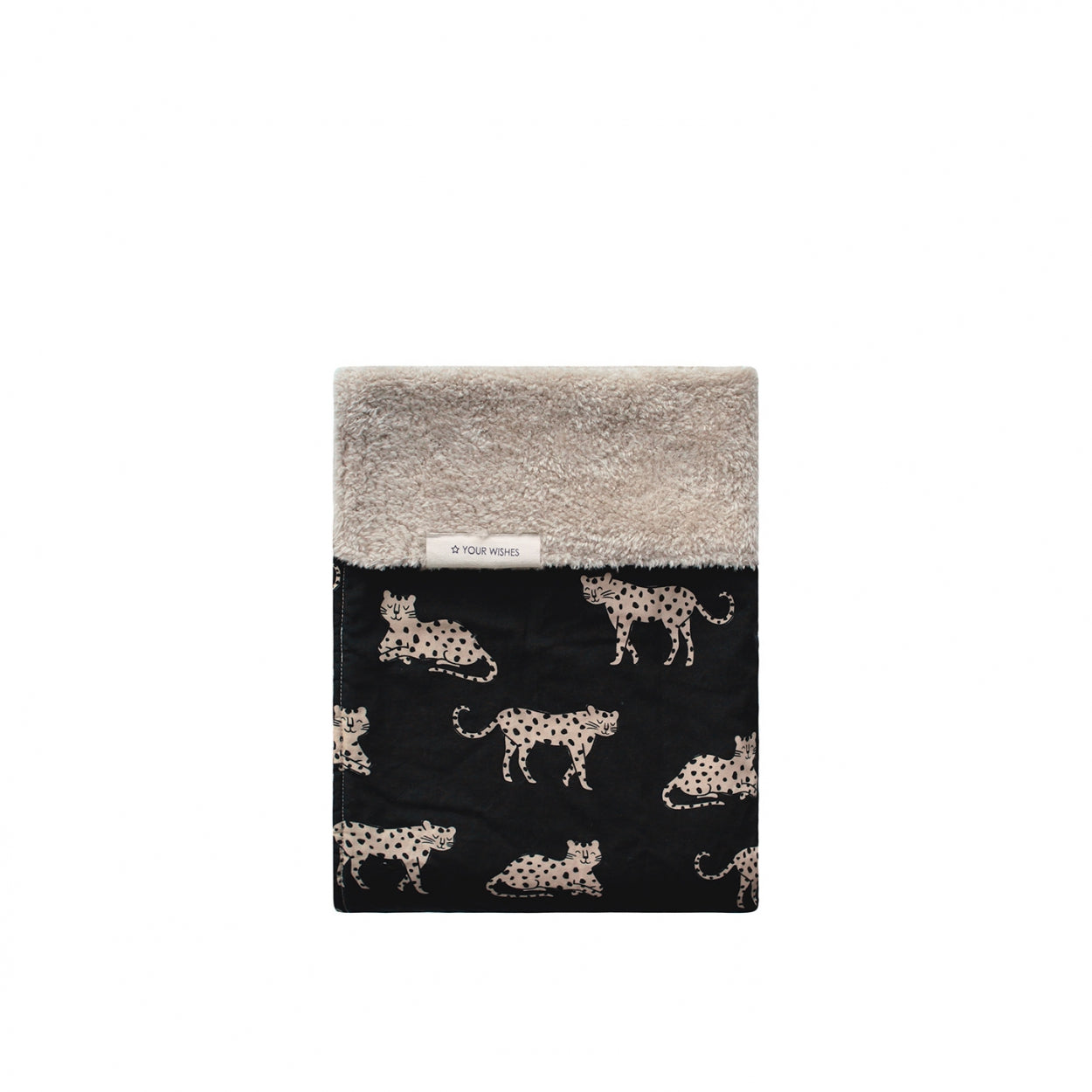 Geboren, um wild zu sein! Wir haben den Wild Cheetah-Print mit einem beigen Teddystoff kombiniert.