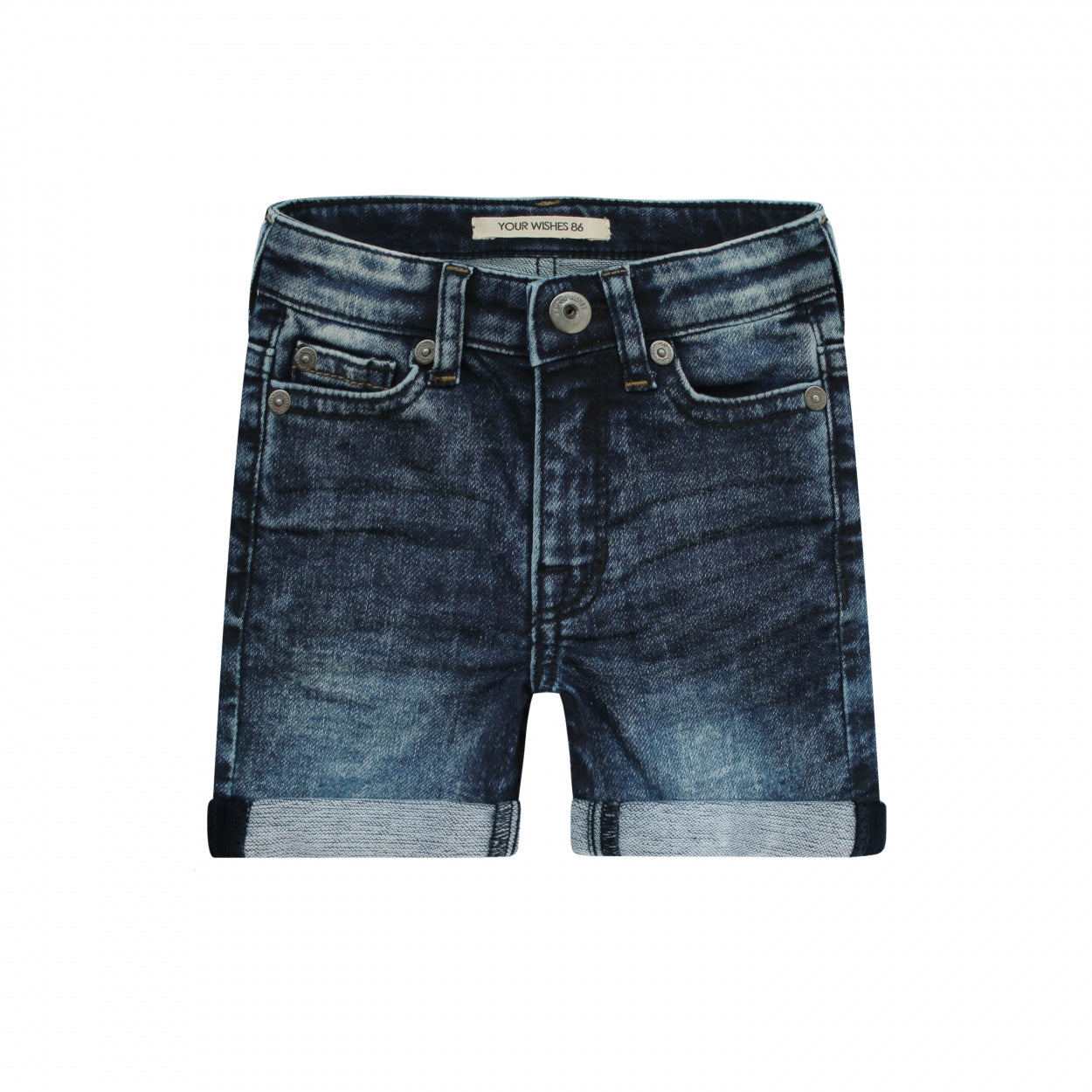 Blue denim shorts made of stretch denim. This provides more freedom of movement and comfort. These short jeans have a cool fit and can be adjusted in width by means of adjustable waistband. This model features a button and zipper fastening.