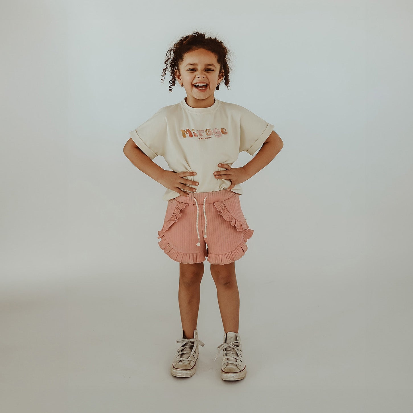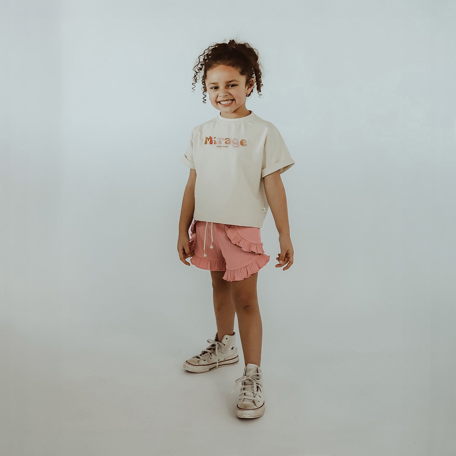 If you are still looking for a versatile T-shirt that can be combined endlessly, the Angie T-shirt is just what you are looking for! This shirt is available from size 110 to 140 and is made of a combination of cotton and elastane. This makes the shirt nice and airy, but also warm enough when combined with a cardigan on colder days. The Angie T-shirt has an embroidered print on the chest with an ombré effect. Because it is embroidered, it will not fade with washing! The Angie T-shirt is nice to combine with for example the Jolene denim skirt or the Josine shorts. Have you already added this fine T-shirt to your shopping cart?