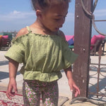 Bring the Colors of Rio into your home with the Broderie Off Shoulder Top. This beautiful green top is made from 100% cotton and features an allover broderie embroidery in a soft green color (sage), giving it a sophisticated and playful look. Perfect for sunny days and special occasions, this top brings the vibrant vibe of Rio to your little fashionista's wardrobe.