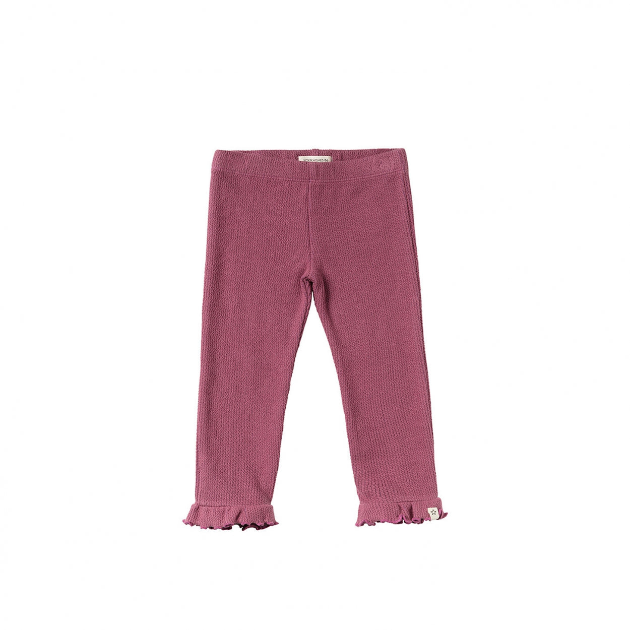 The Hazel leggings are the perfect basic for your little one and are available in sizes 80 to 98. The legging has an elastic waistband and is finished with ruffles at the bottom of the legs. The fuchsia fabric is nice and soft and stretchy, making it very comfortable to wear for your little one. Pair the Hazel leggings with a sweater or cardigan and complete the look.