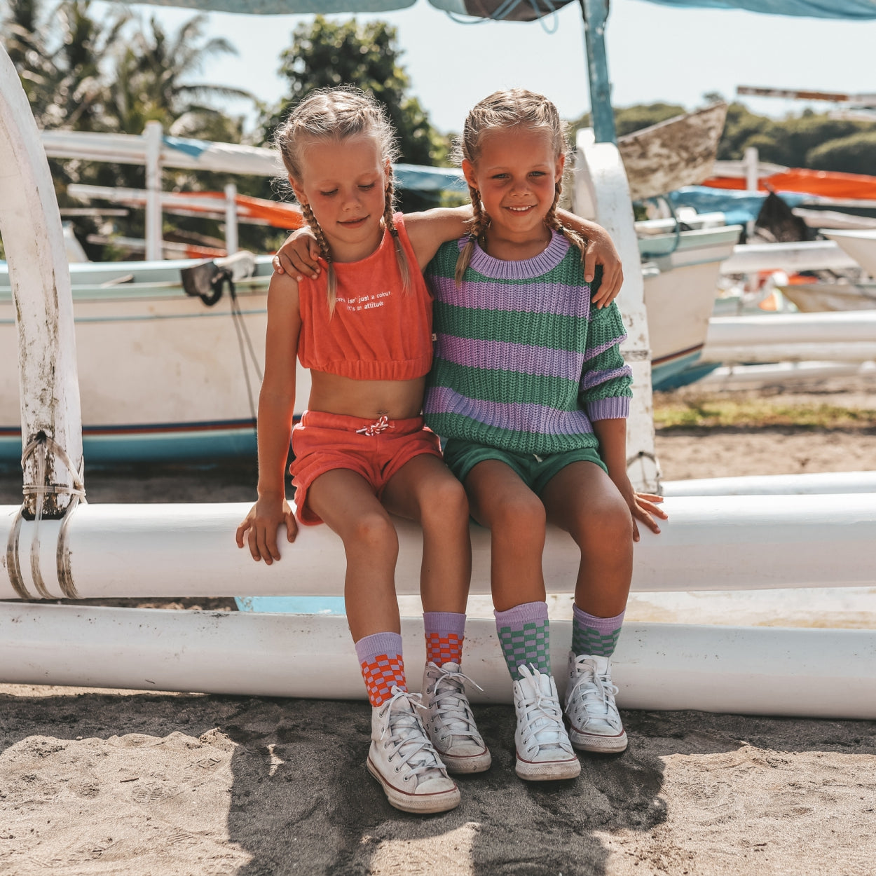 These brightly colored socks make any outfit more fun! The socks are sold in a 2-pack, so the set includes two pairs of socks. The elastic cuff ensures that the socks stay put while playing and do not sag. Ideal for active children! The socks are nice to combine with all other items from the Candy Canes collection!