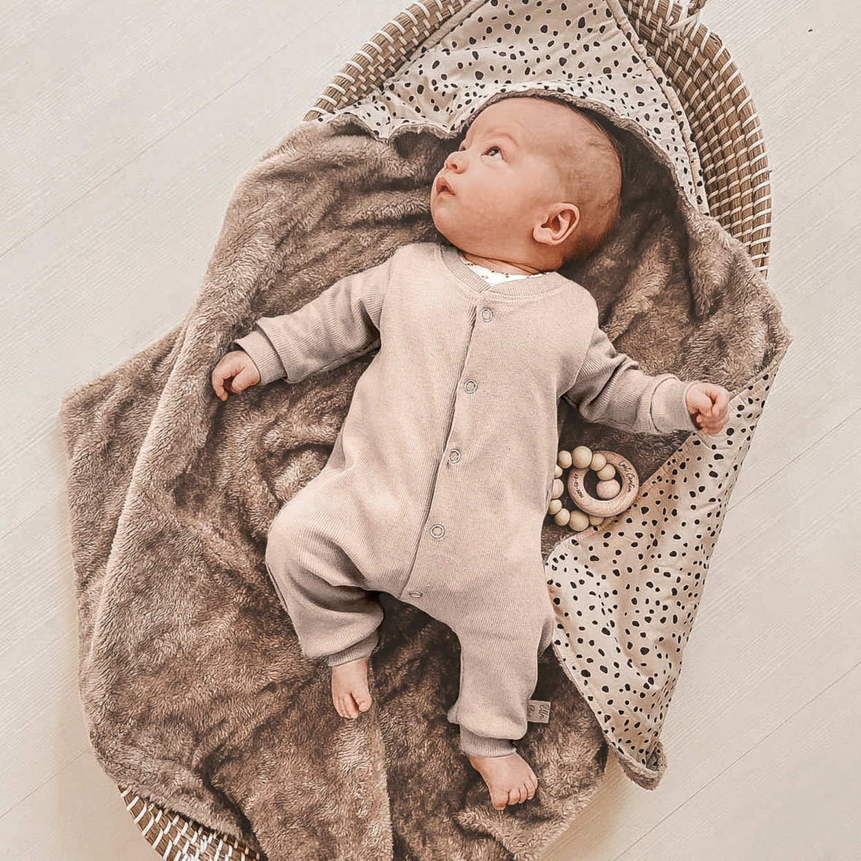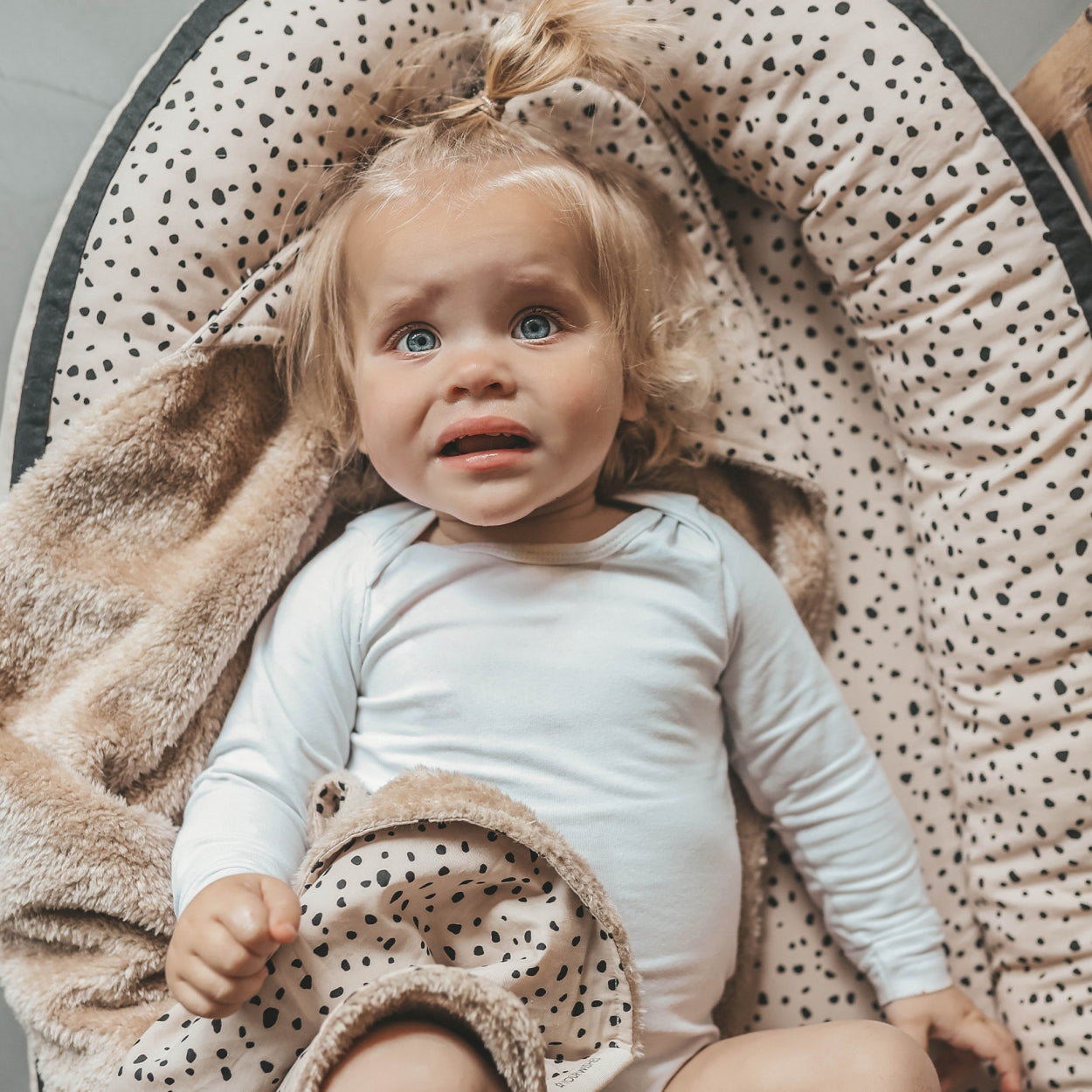 Don't cheetah on me! We combined the Cheetah print with a beige teddy fabric. Are you going for an animal print in the nursery?