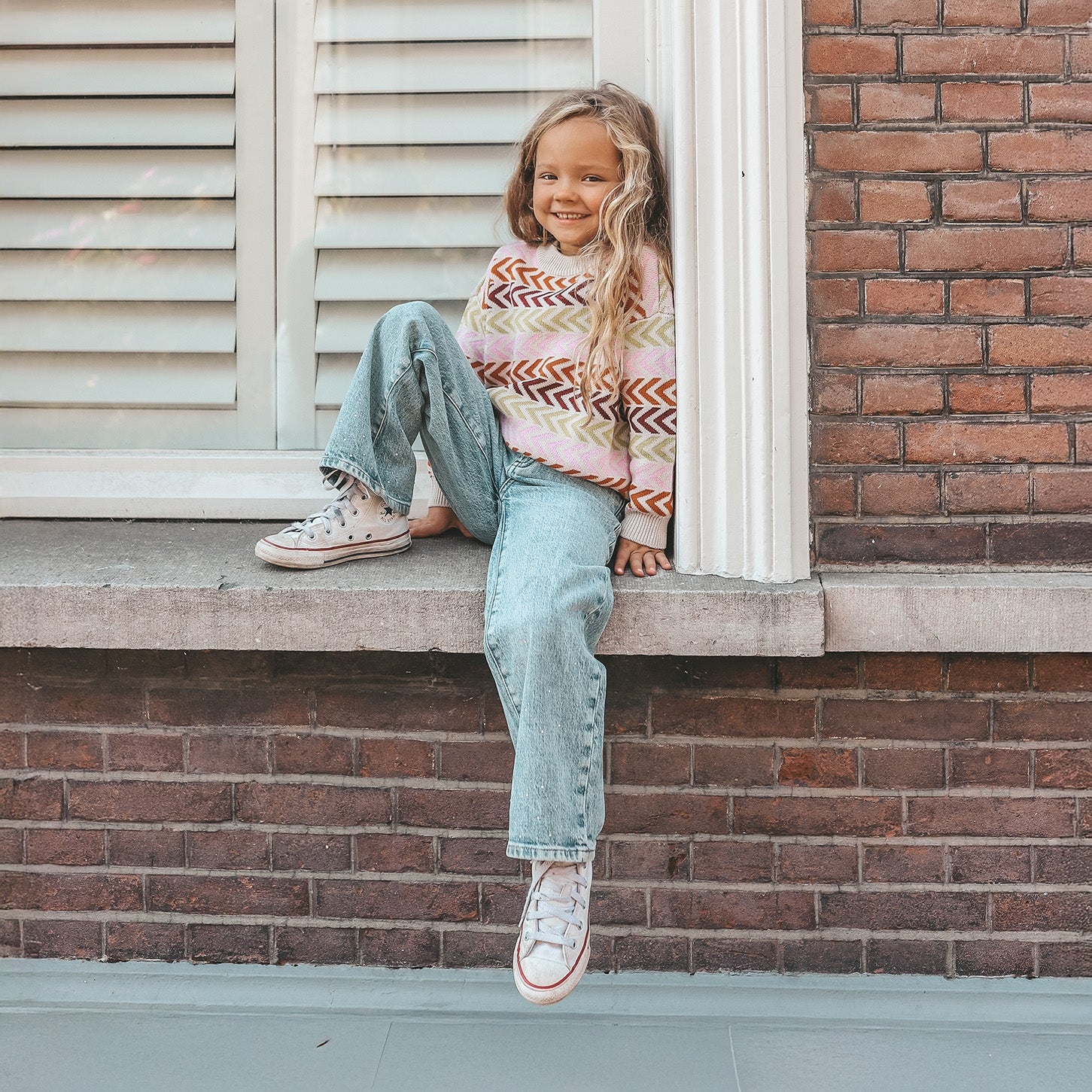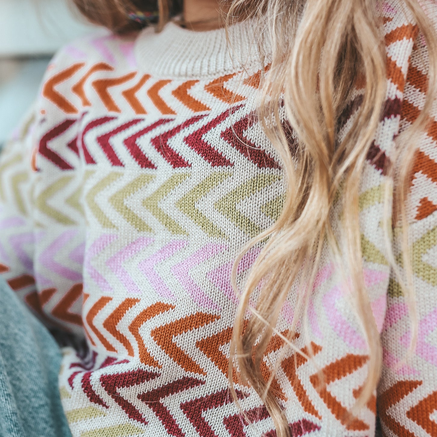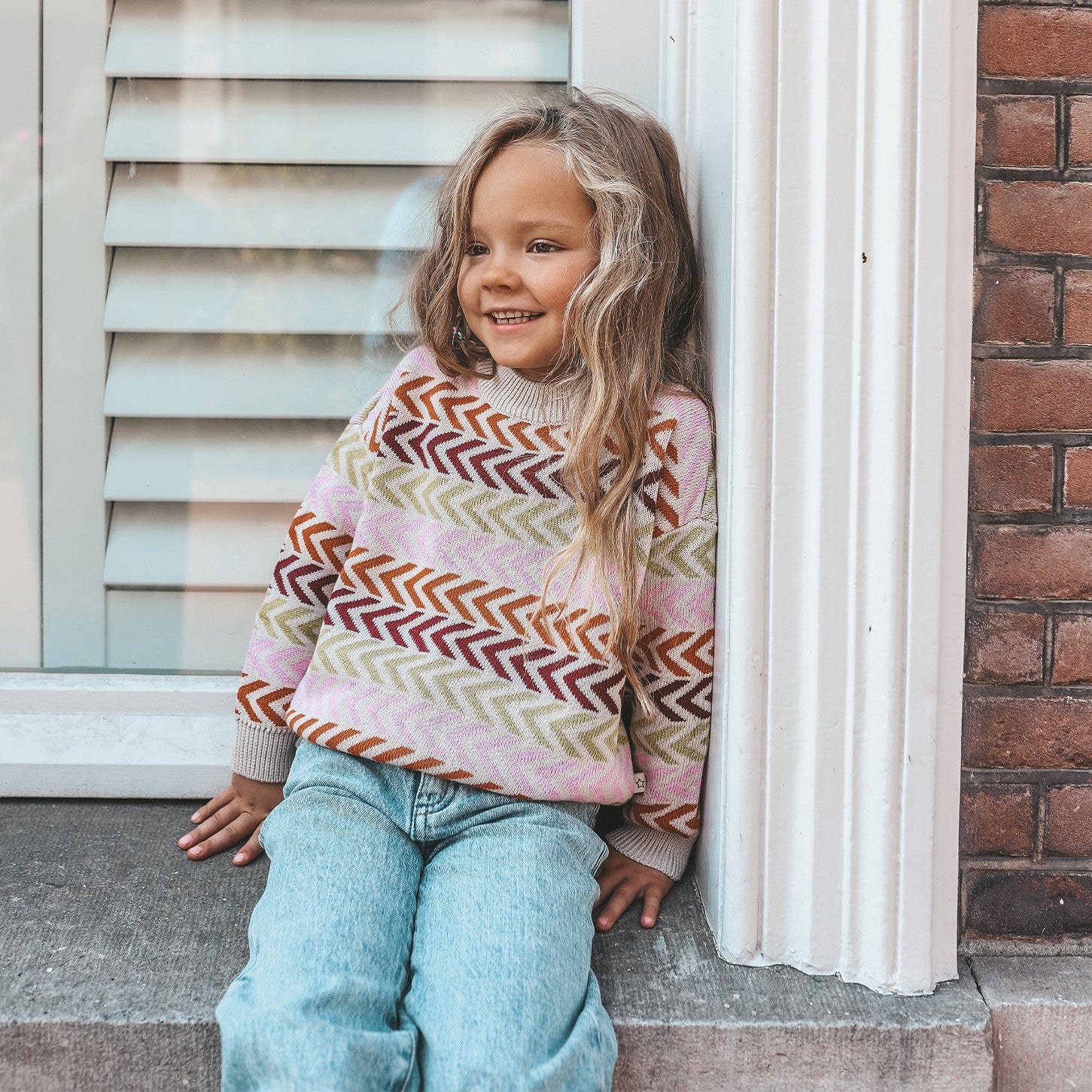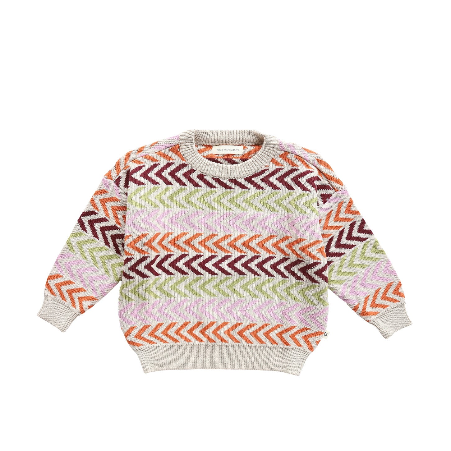 Scandi comfort, chunky style. Discover the warm and stylish Danish Knit Chuncky Sweater, perfect for the girls who love a Scandinavian look. The sweater is available from size 74/80 to 146/152. This loose fit sweater is made of 55% acrylic and 45% cotton, which ensures comfort. The knitted-in multicolor pattern adds a playful and colorful touch to any outfit. The Knit quality provides extra warmth during cold days.