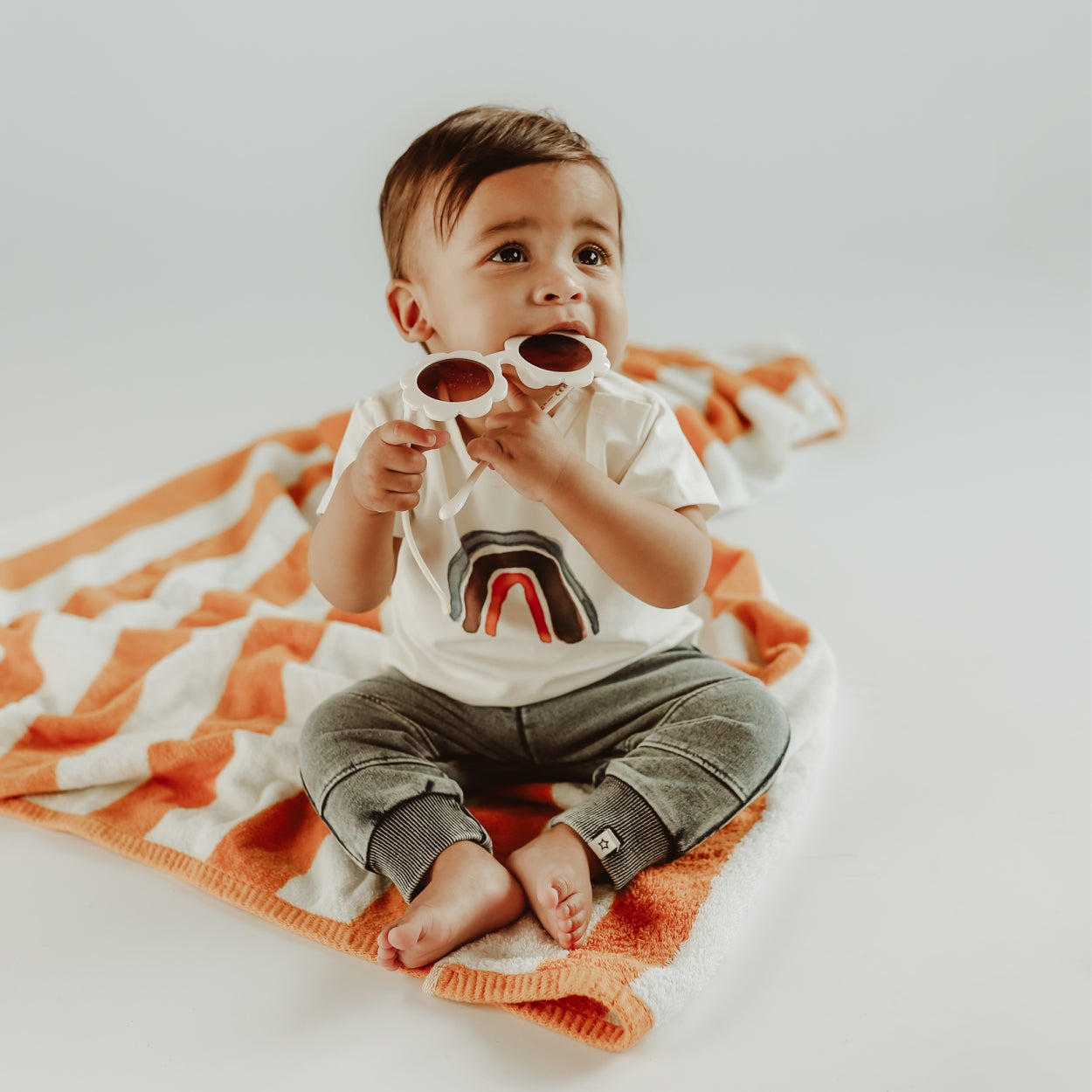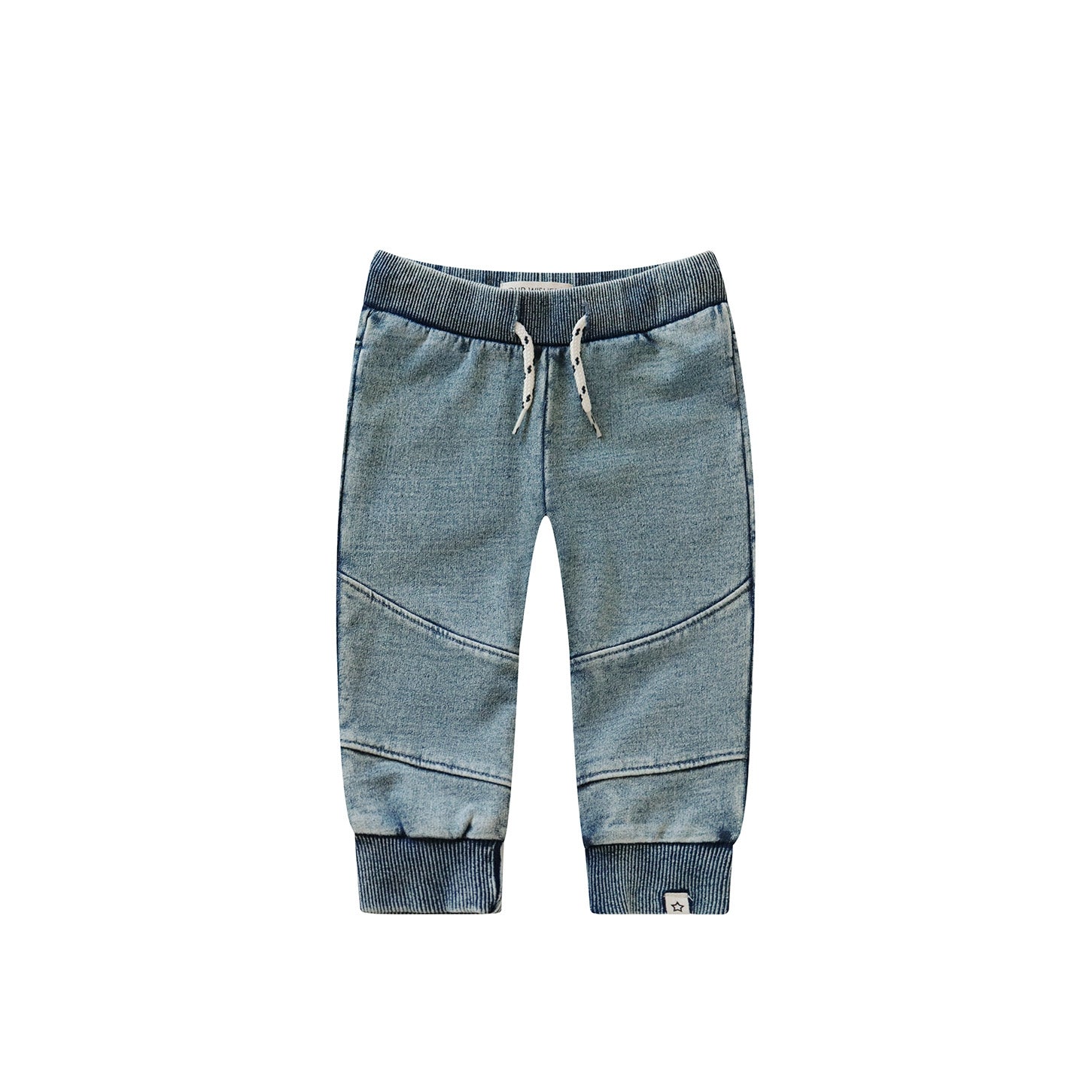 Denim for your baby? Then go for our knitted denim items! These knitted denim pants are super comfortable for your newborn baby. The pants have a cool cut and feature a drawstring waistband and cool seams at the knee.
