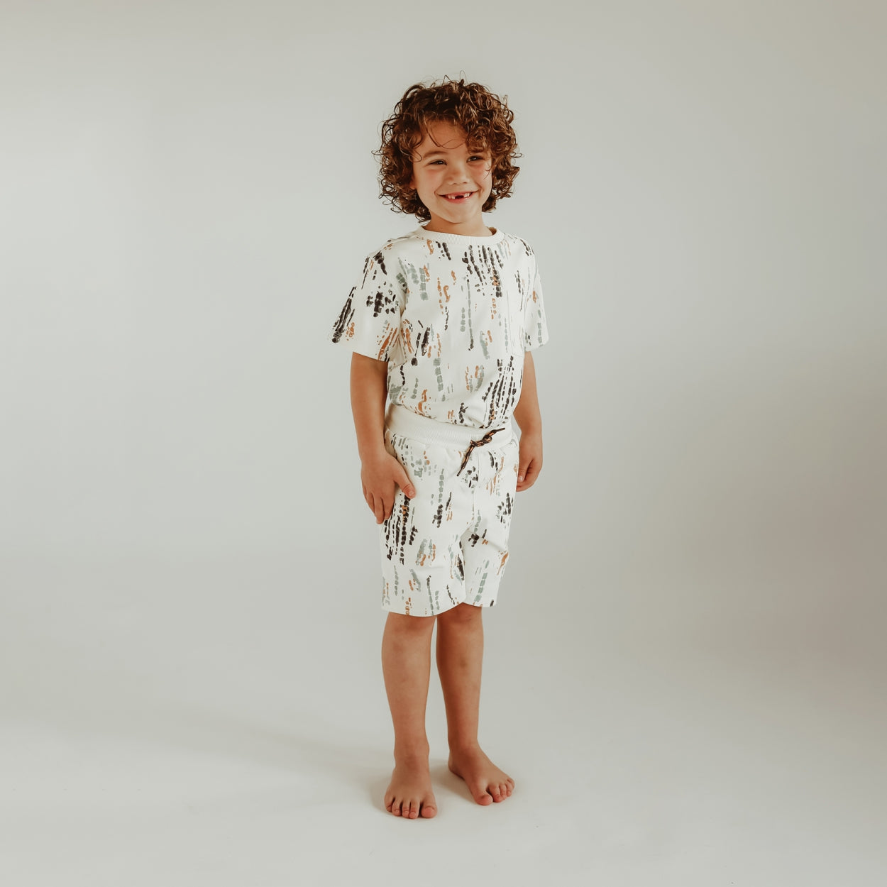 Bring color into your kids' closet this summer! These colorful shorts have a cool tie dye print. The length of the shorts is a bit longer than our standard shorts. A versatile garment which is easy to mix and match.
