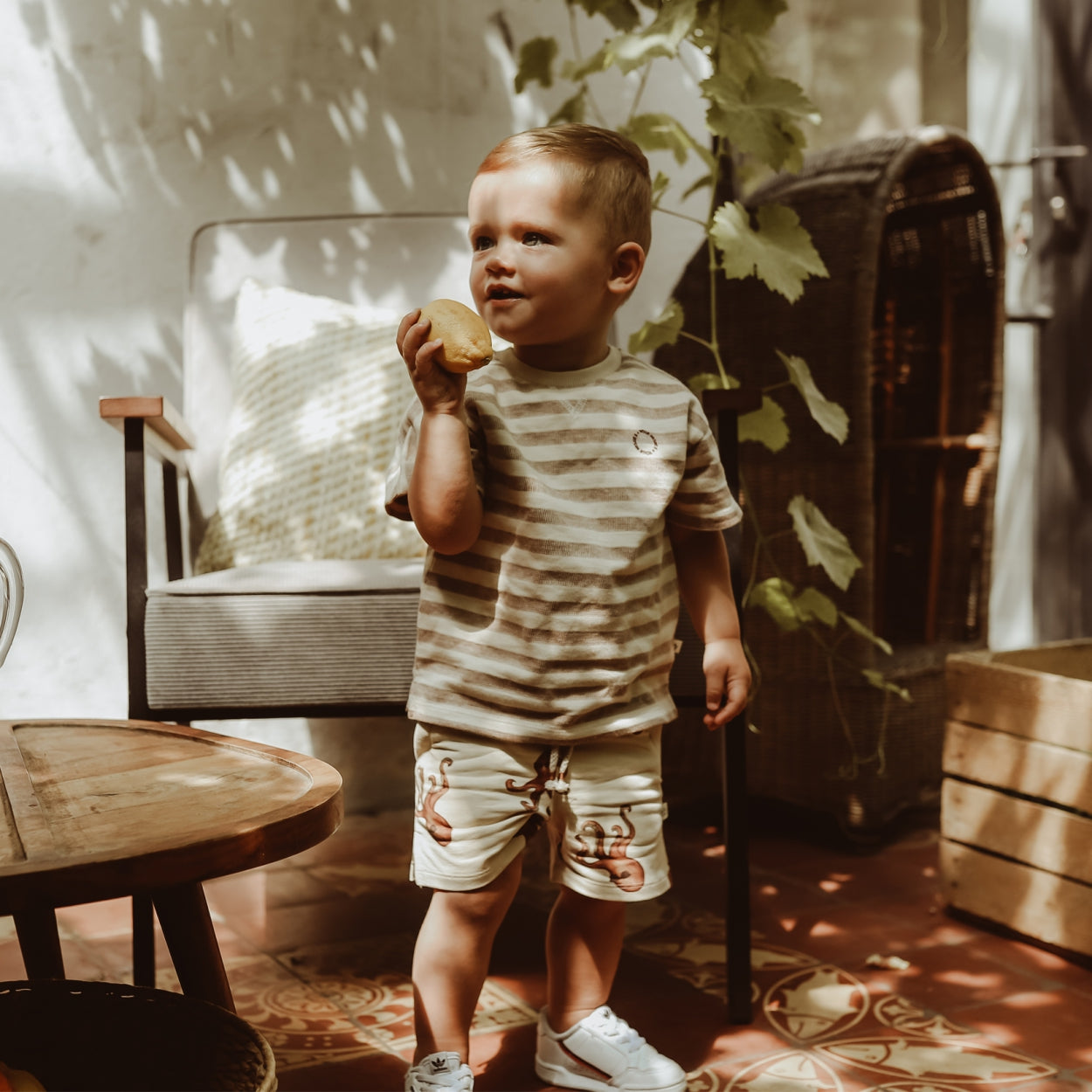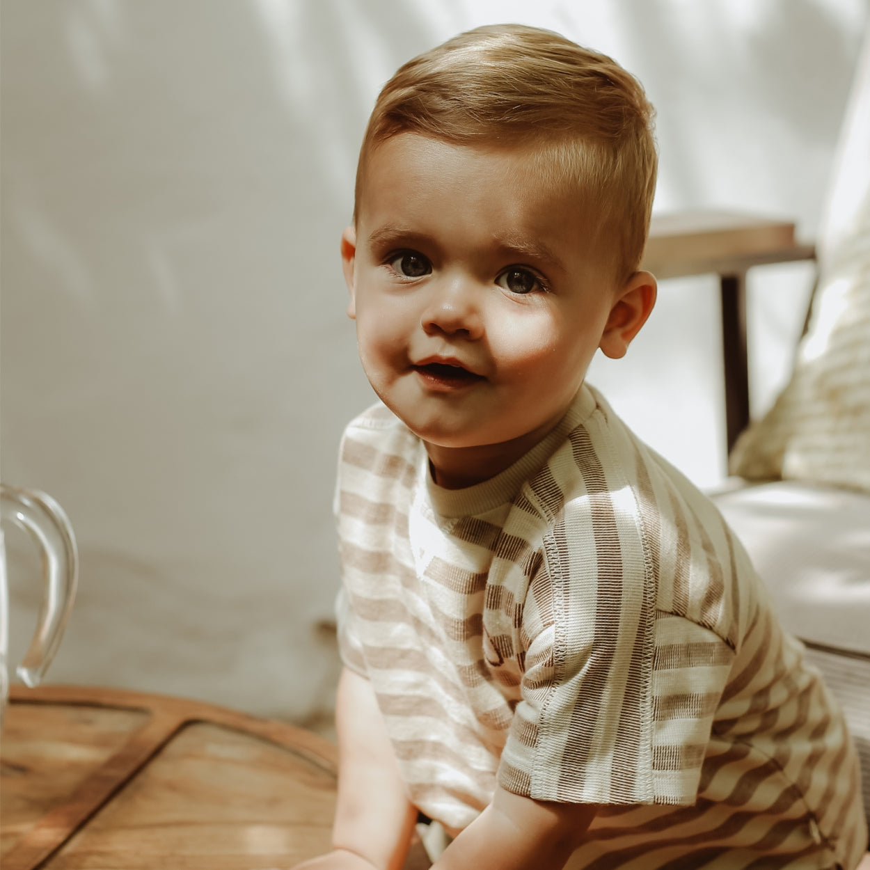 This sweat quality t-shirt has a knitted stripe design which gives a luxurious look. The t-shirt has short sleeves and a round neckline. |