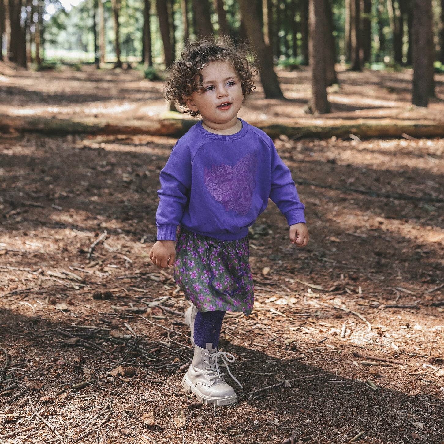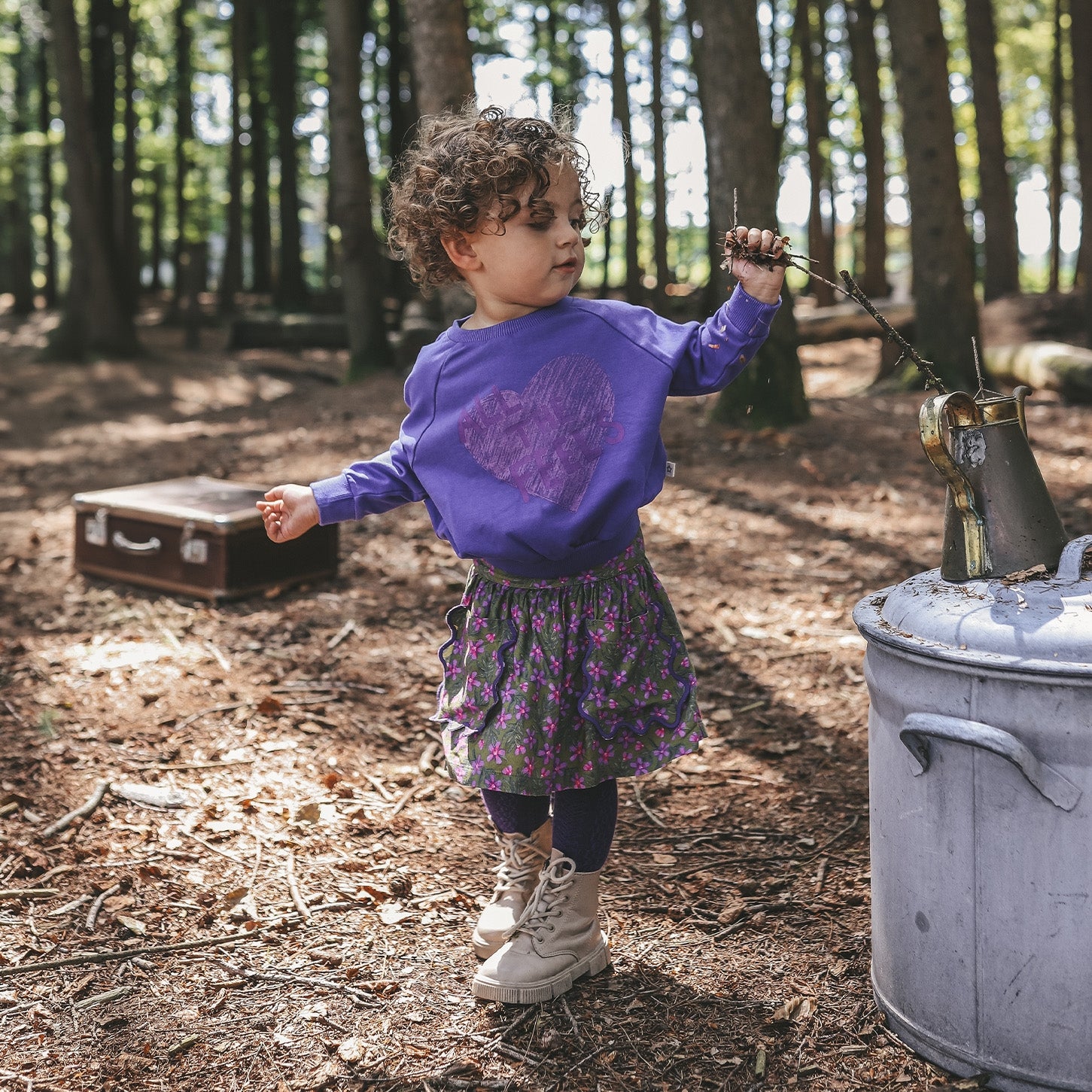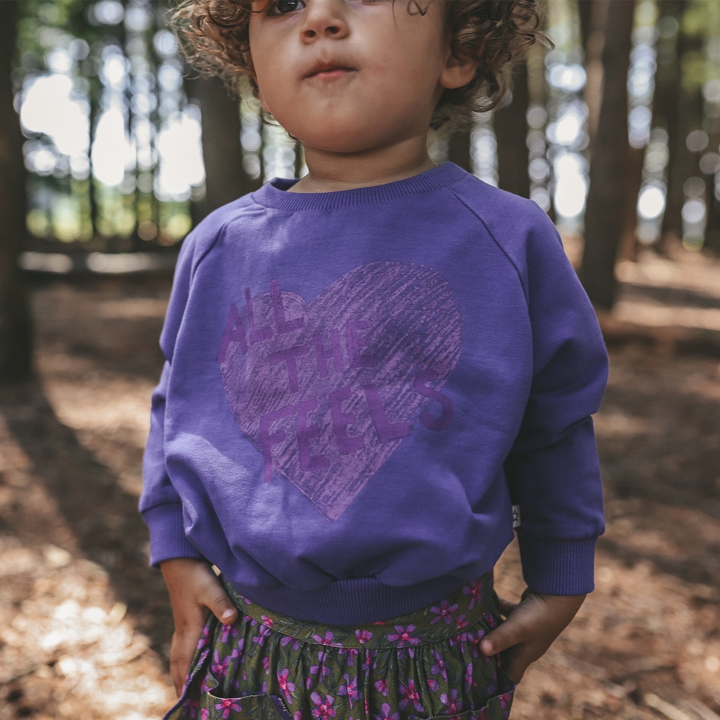 Time to get all the feels with the Feels Oversized Sweater, available from size 80 to 140. The sweater is made in a combination of cotton and elastane and is finished with elastic at the bottom of the sweater and ends of the sleeves. This gives the sweater the nicest fit, but also keeps out the cold. The Feels sweater has an oversized fit, which means it falls a bit roomier. On the chest you will find a printed chest print of a drawn heart with all the feels on it. Pair this cool oversized sweater with the Vivid Flower Pocket Skirt and Knit Knitted Tights and complete the look!