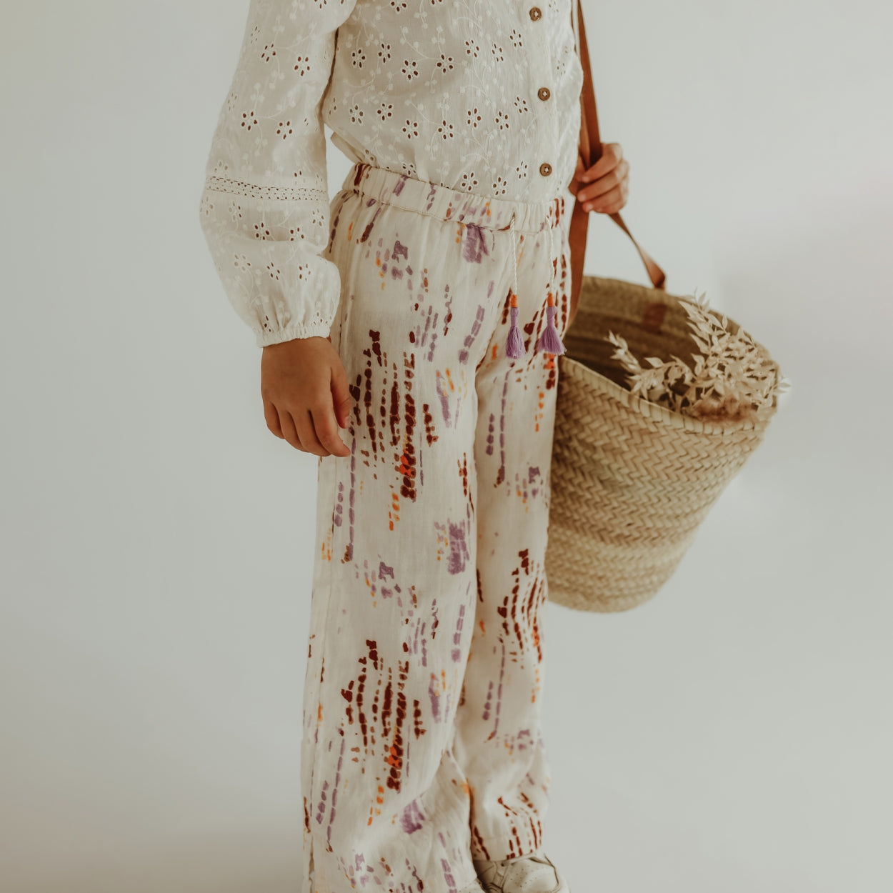 Upgrade your wardrobe with our comfortable and stylish tie dye print wide leg pants. These pants have a loose fit and are made of soft material. The tye die print is a playful addition to any outfit and creates a unique look. With the elastic waistband and wide legs, these pants offer great freedom of movement and maximum comfort. A nice detail are the tassels on the drawstring waist.