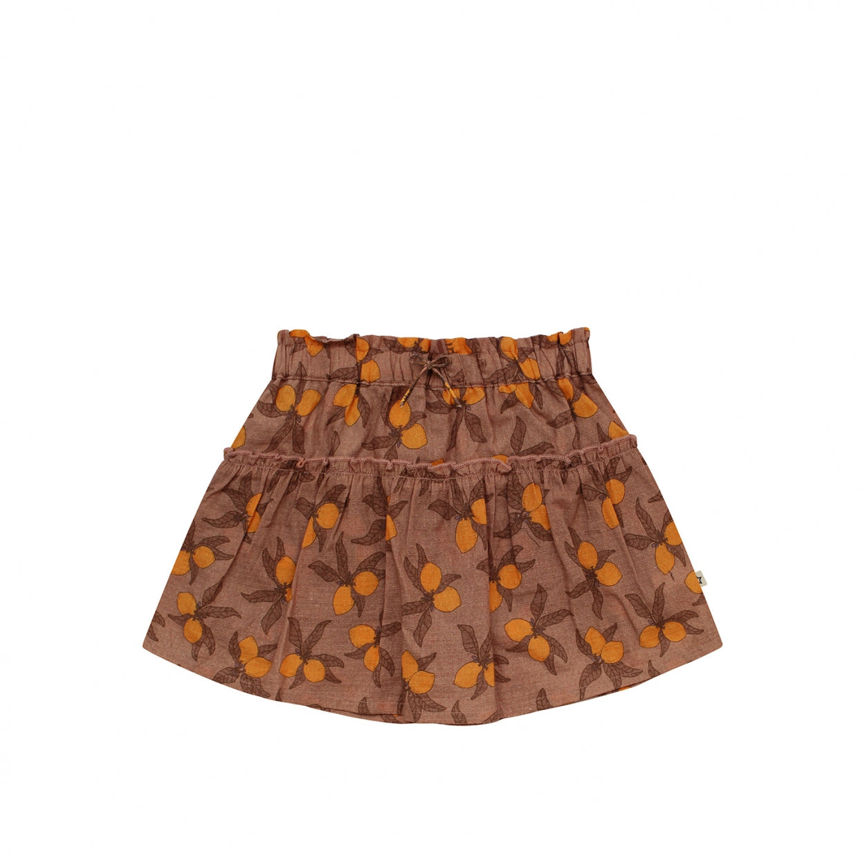 Sway, swing, spin around. This skirt is one to fall in love with! The all-over print with oranges in brown and orange gives you the ultimate summer feeling. The skirt has an elastic waistband and bow front. Due to the flared design, the skirt falls nicely dashing. Girls will love it!
