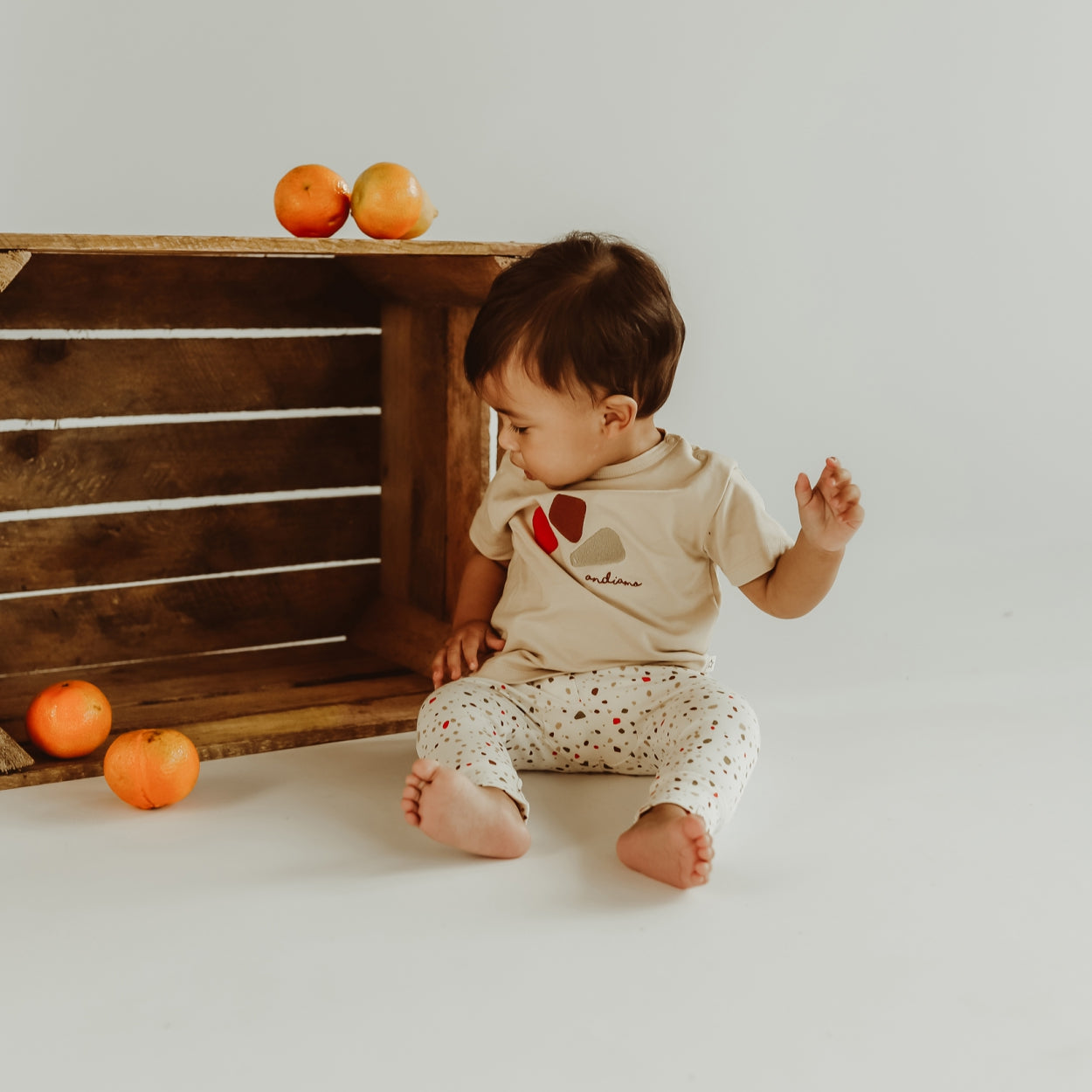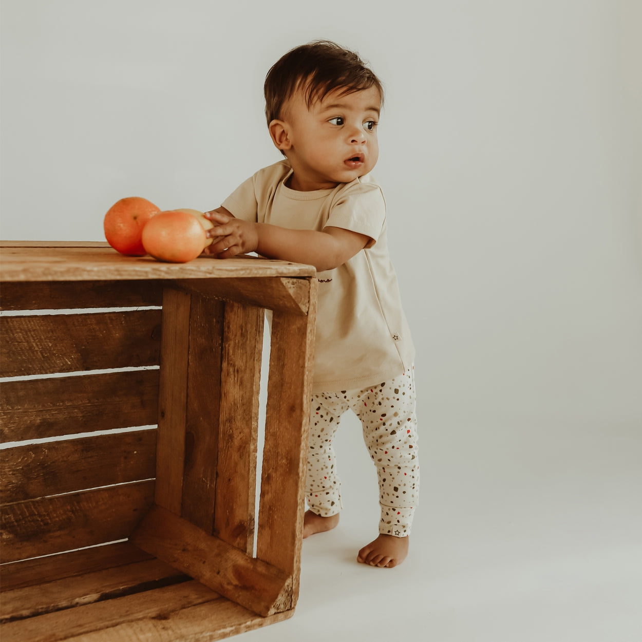 Soft baby pants made of a stretchy fabric. The pants have an elastic waistband. Nice to combine with the matching wrap-over romper. |