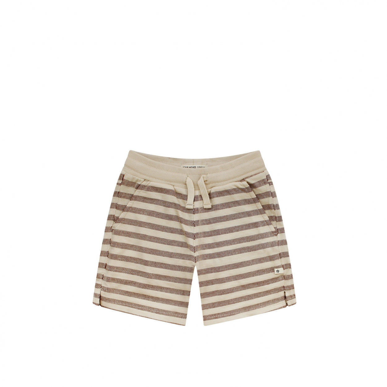 These sweat quality shorts have a knitted stripe design which gives a luxurious look. The shorts have side pockets and a cord in the waistband to adjust the shorts to your wishes. The model is longer and therefore very suitable for boys! |