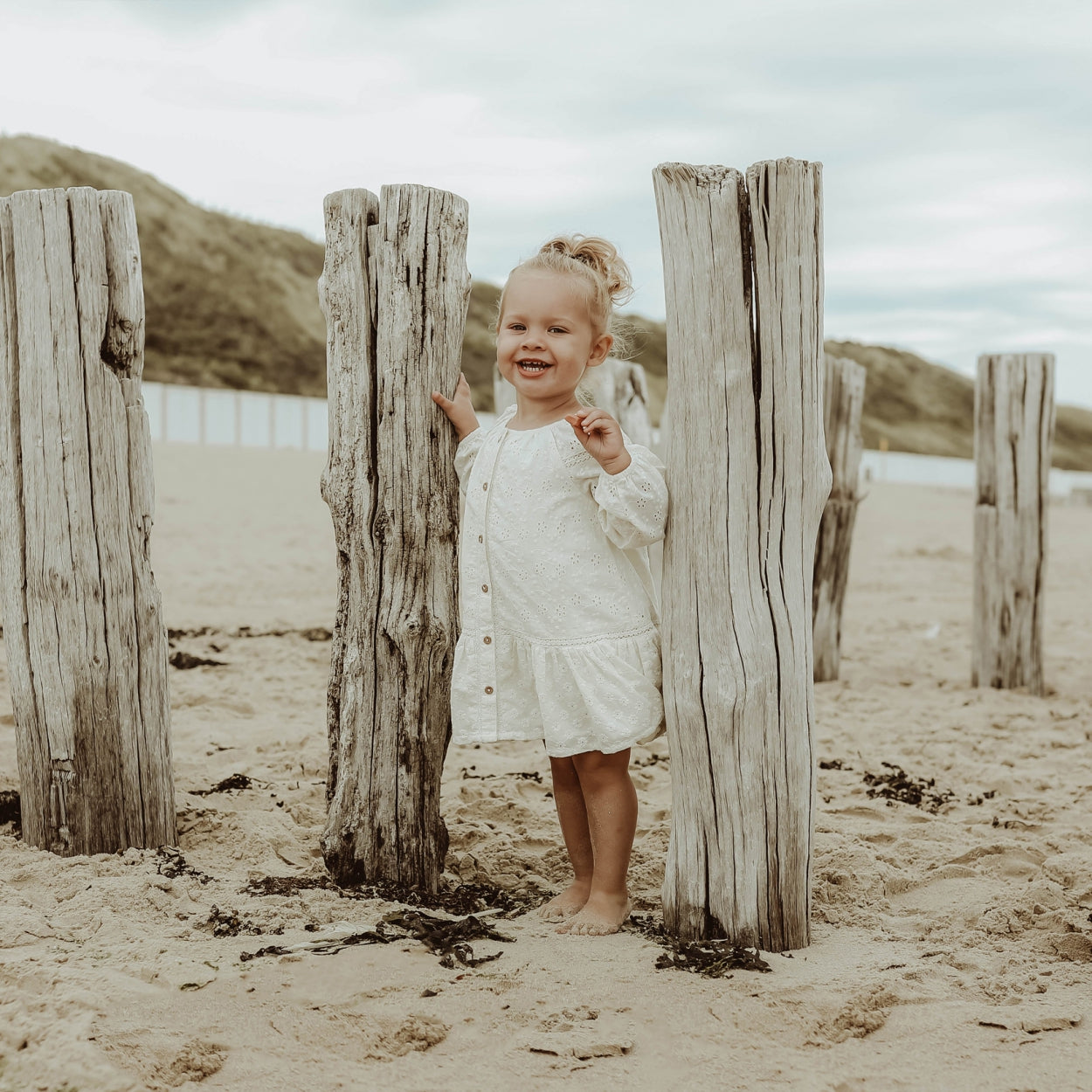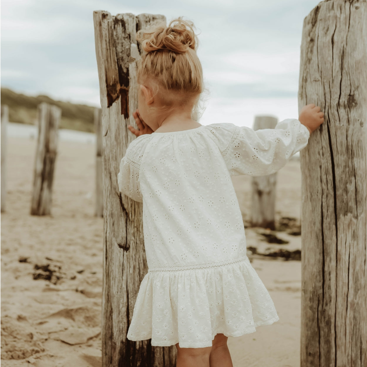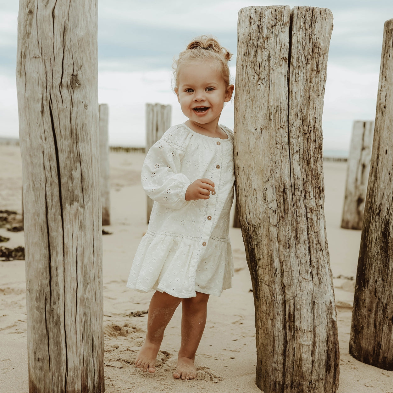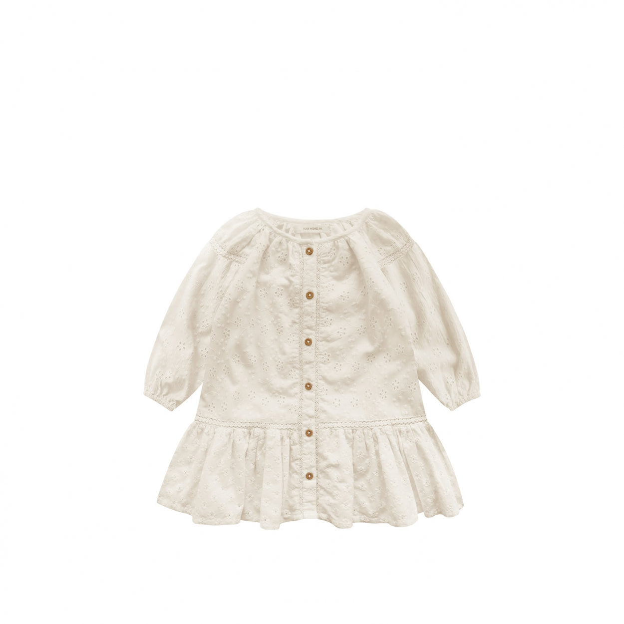 This is the dress you want this summer! A beautiful dress that makes every girl feel like a princess. A romantic dress with embroidered pattern for baby and kids. The embroidery dress has long sleeves and a round neckline. A flared model with a full-length button fastening at the front.