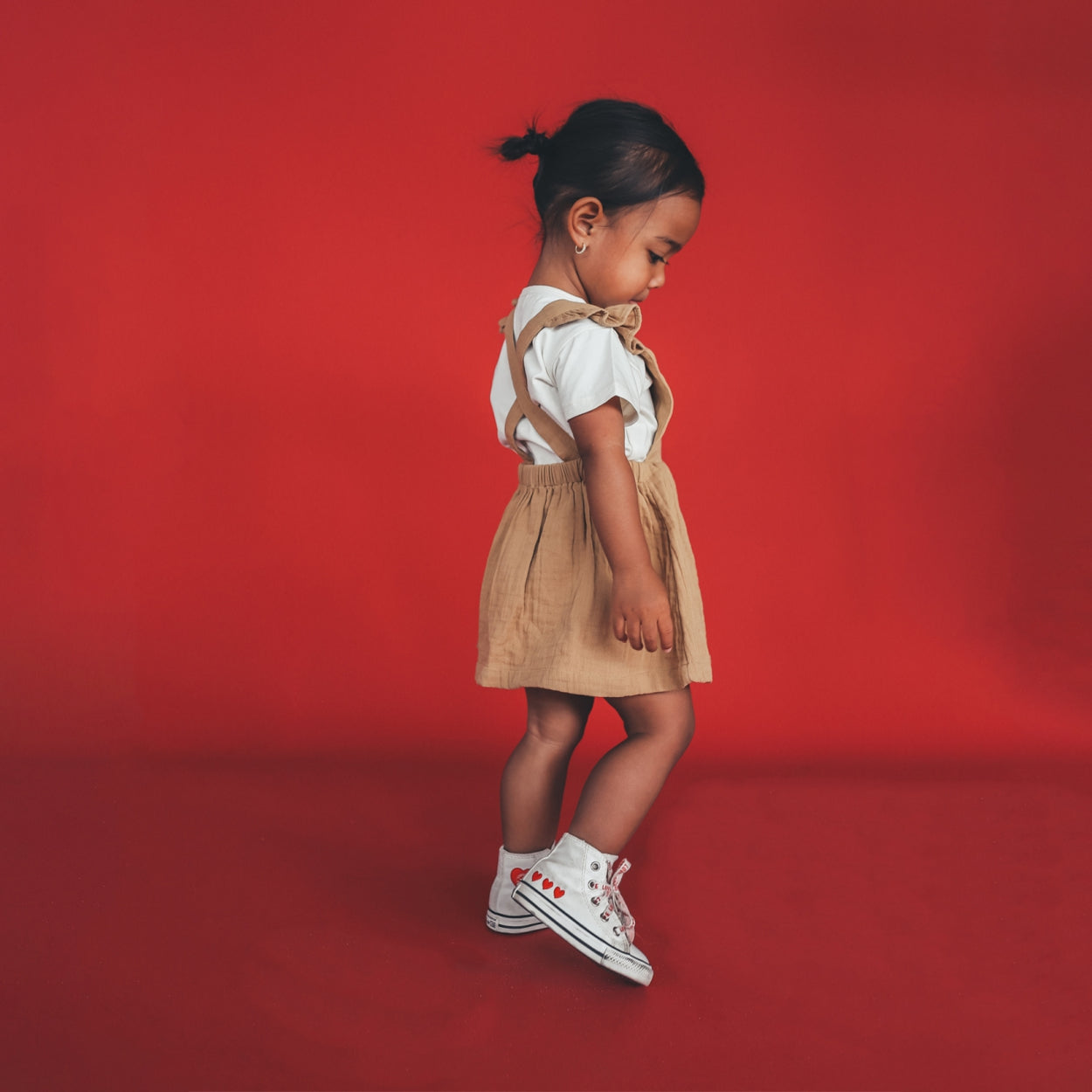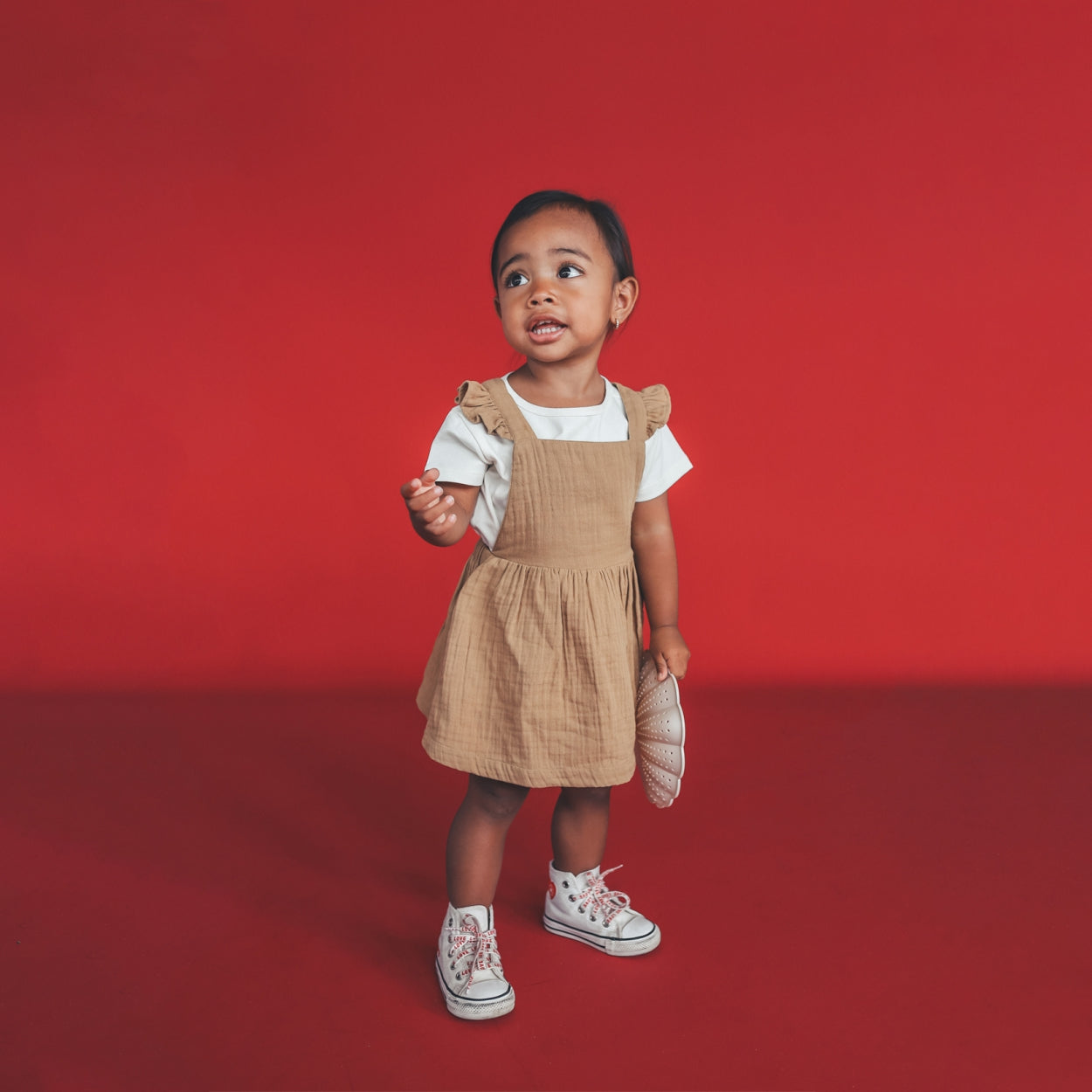A dress in an airy muslin quality. The dress has a wide flared design and features an elastic waistband. The shoulder straps are finished with ruffles. Your girl will be totally summer ready in this breezy summer dress!