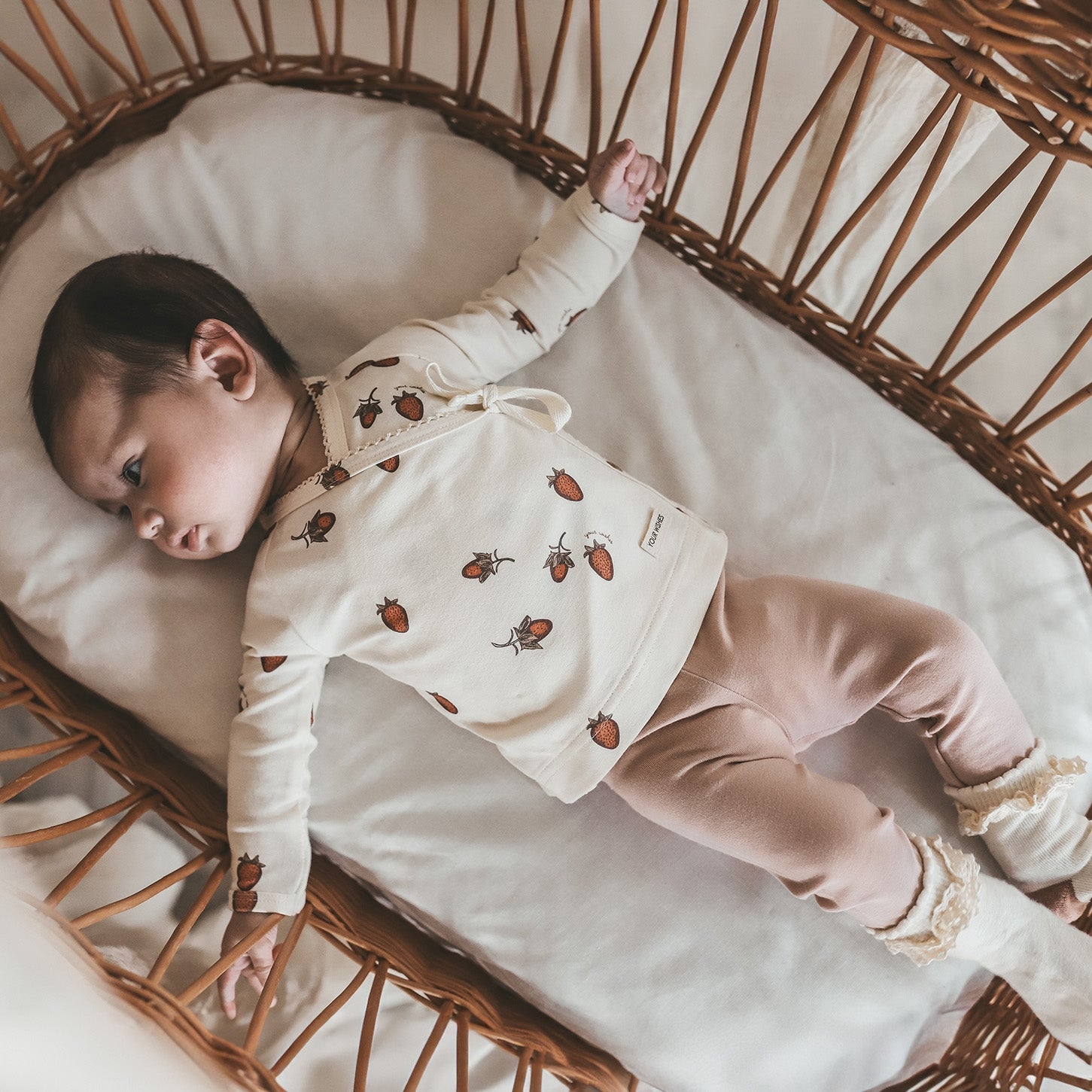 The Solid legging is the ideal basic item for your closet and is available from size 50 to 74. The legging is made of a combination of cotton and modal, which makes the fabric absorb up to 50% more moisture than other fabrics. Also, the fabric fits well around your child's body and has a high wearing comfort due to the elastic waistband. Combine the leggings with the matching Fitted Wrap Romper or choose the cute strawberry Fitted Romper. Have you already added this fine item to your shopping cart?