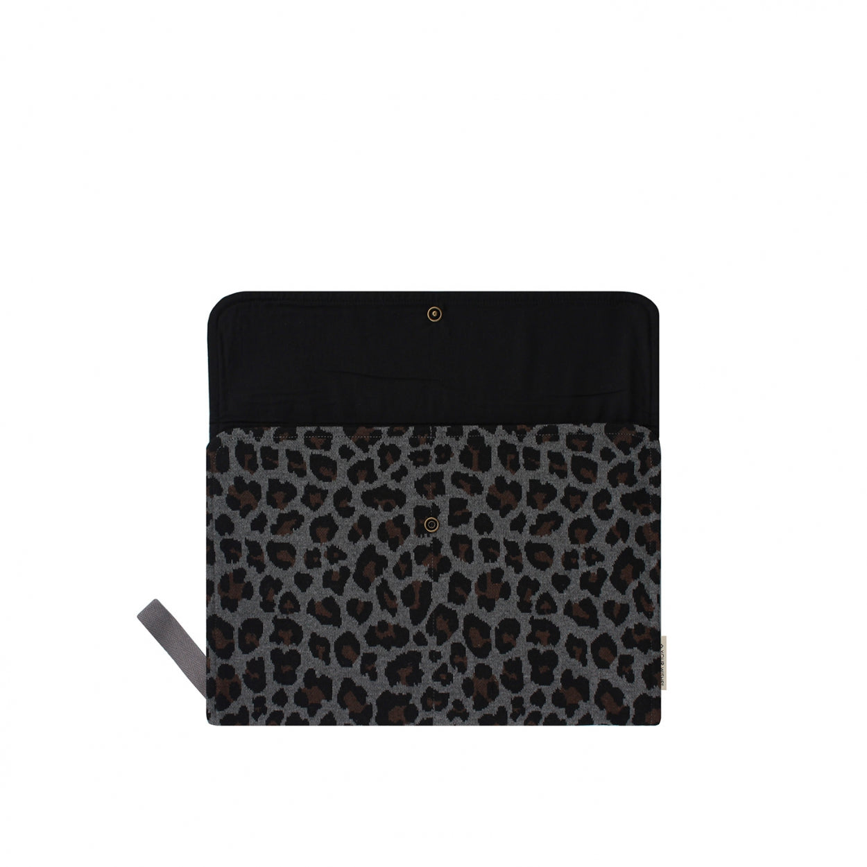 This jacquard-quality leopard diaper pouch is handy on the go to carry your diapers and wipes. The diaper pouch folds out and closes with a snap button on the front.
