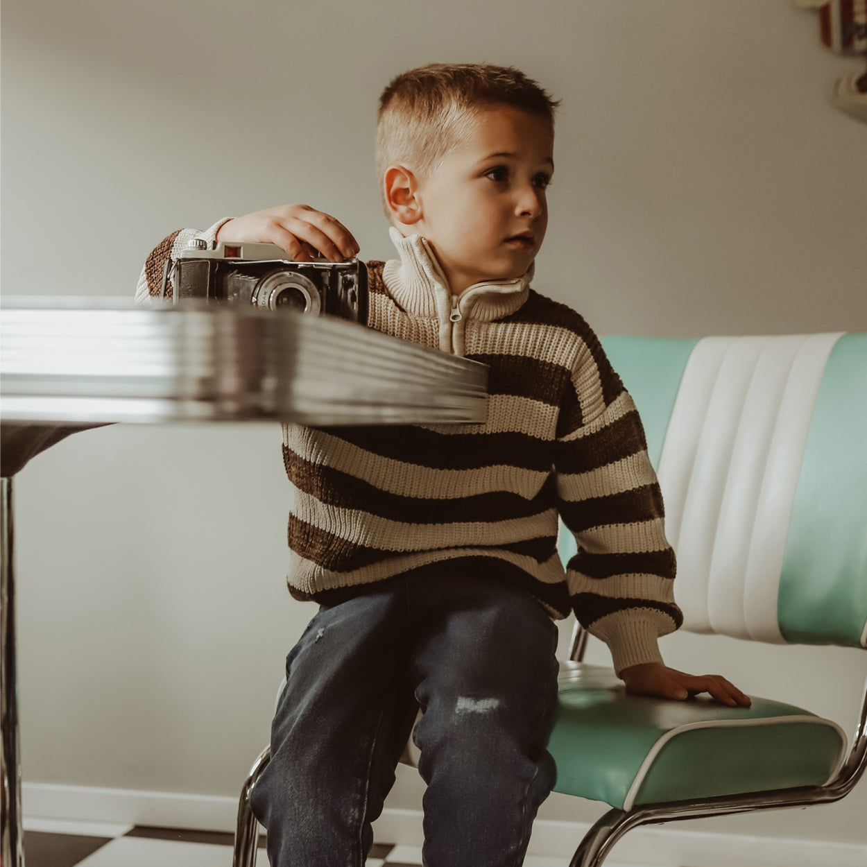 The ideal warm and stylish sweater for this winter is without a doubt the Max sweater, available from size 98/104 to 146/152. This wonderfully warm sweater is made of 100% cotton and has an oversized fit. The collar can be opened with a zipper, which is not only a stylish addition but also makes it easy to put on and take off. The striped pattern also gives the Max sweater a casual look, making it a perfect addition to your child's wardrobe.