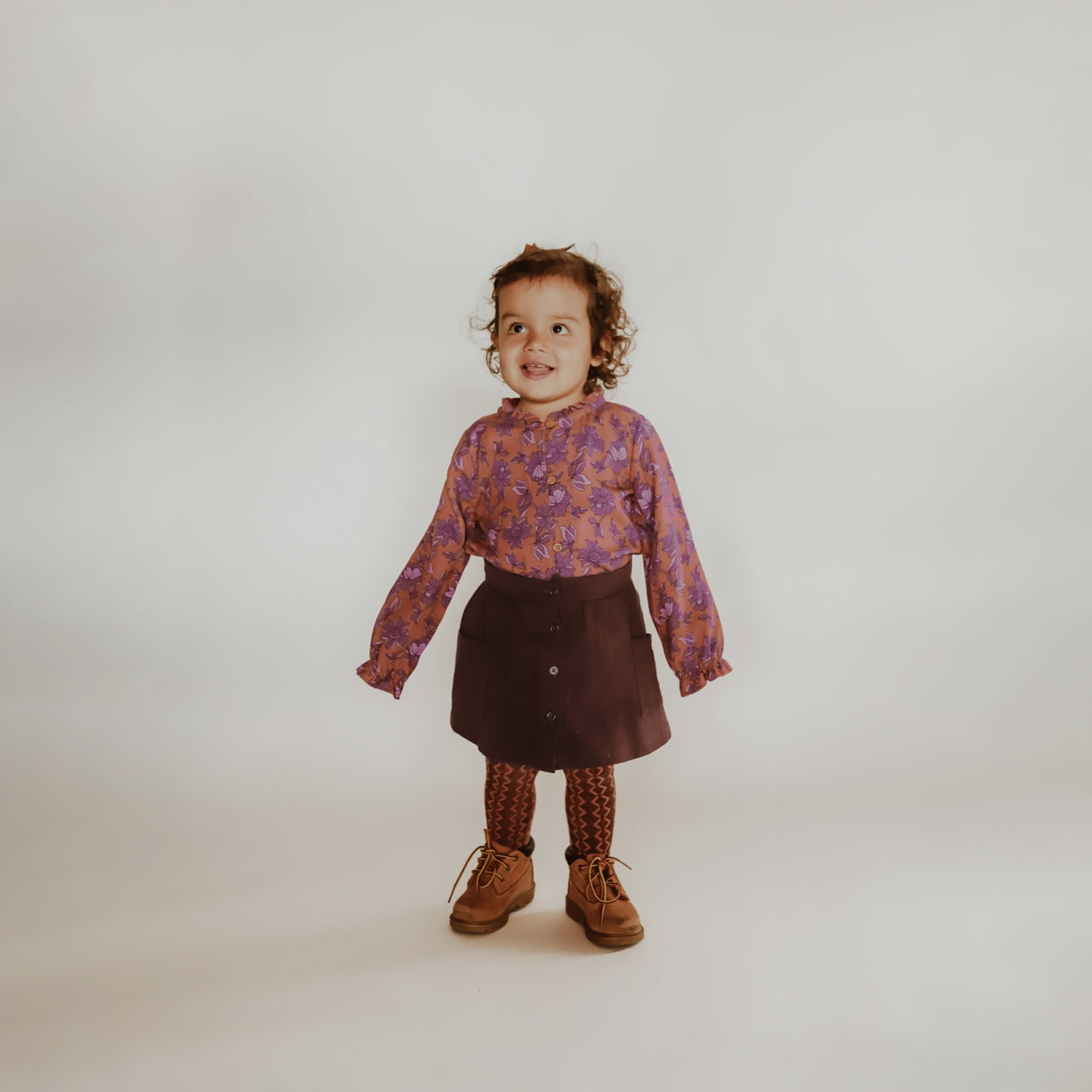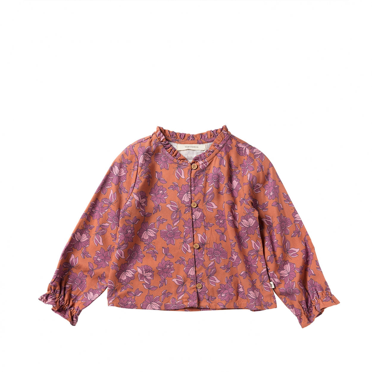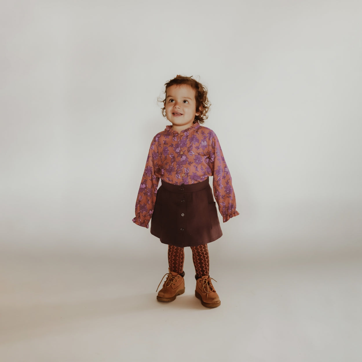 The Mila blouse is this season's must-have item and is available from size 80 to 146/152. The blouse closes with wooden buttons that you pull through an elastic loop and as a finishing touch, there are ruffle details on the collar and sleeves. The sleeves also have an elastic trim at the end to further enhance the fit of the balloon sleeves. The print of the Mila blouse is based on a hand-painted design, making it truly a one-of-a-kind item. Add a bright touch to any outfit with the Mila blouse!