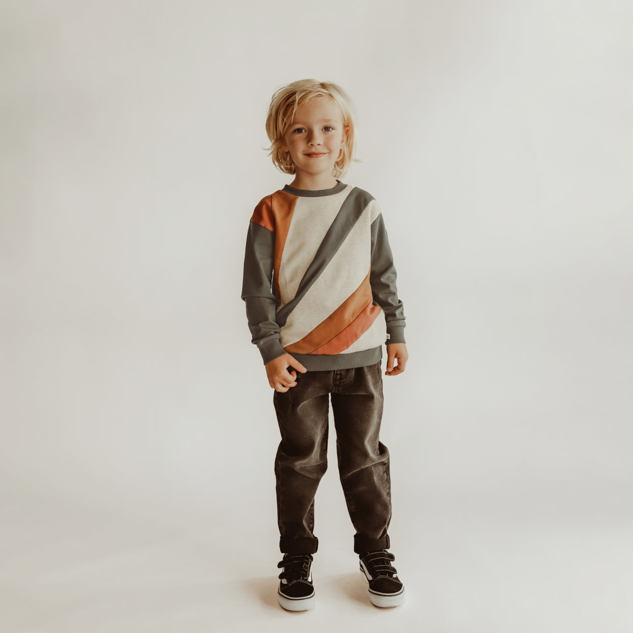 Get comfy with the Mitch sweater, available from size 80 to 146/152. The sweater is made of cotton and elastane and feels soft. This composition makes the fabric stretchy, so it fits perfectly around the body. The ends of the sleeves and the bottom of the sweater also have an elastic finish for a better fit. The different colored areas of the Mitch sweater ensure that it can be endlessly combined with other items from the wardrobe. Have you already added this to your shopping cart?