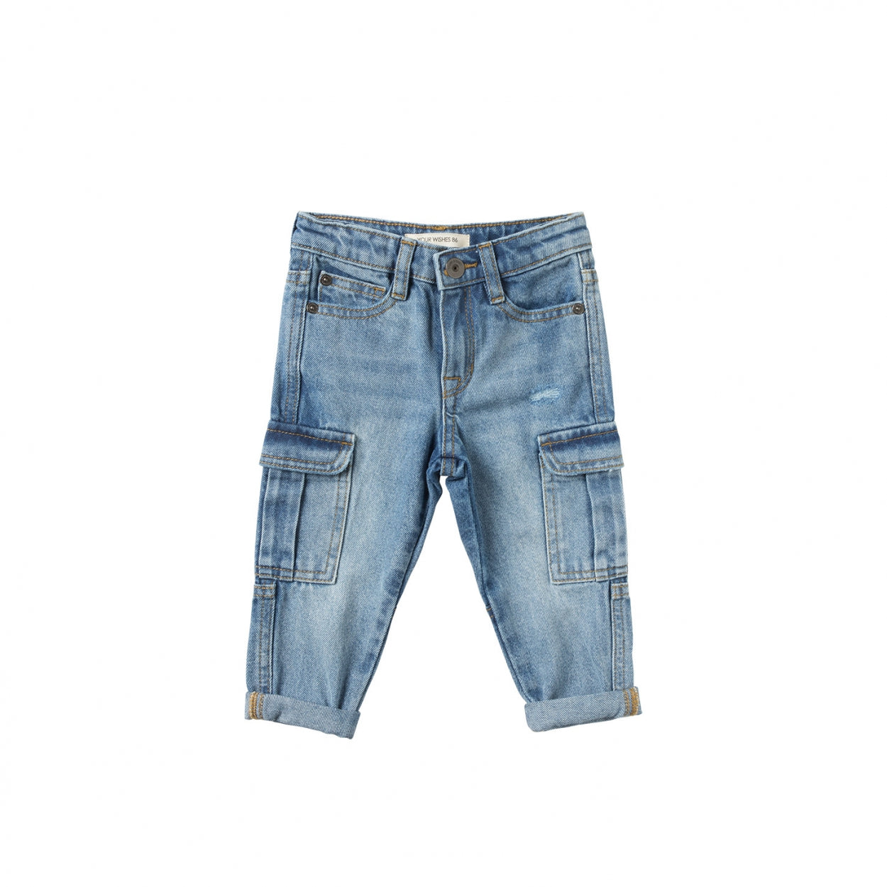 The Pedro cargo pants are indispensable in your child's wardrobe and are available from size 80 to 140. The fit of the jeans is a bit looser around the hips, but becomes increasingly narrower towards the ankles. This will probably seem familiar to you, because our popular Floyd jeans also have this fit! Real cargo pants are of course characterized by the cool pockets on the side of the pants and they will certainly not be missing here. In addition, the Pedro cargo jeans also have two pockets at the front and one back pocket on the back of the pants. The pants close with a zipper with hook and eye closure and have an adjustable elastic waistband. This means you can be sure that the cargo jeans fit your child's body perfectly. Have you added the Pedro cargo jeans to your shopping cart yet?