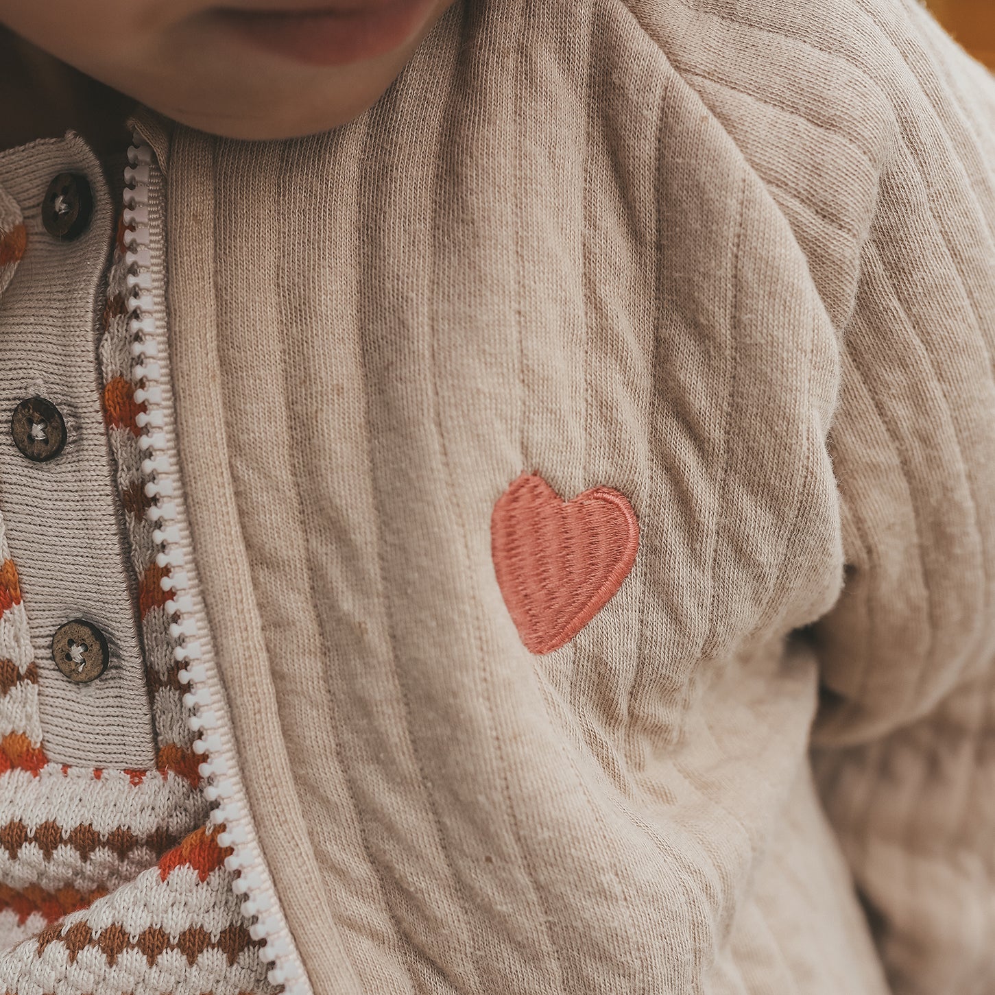 Dit beige kindervestje met hartjes is een must-have voor het nieuwe seizoen. Het vest heeft een zachte, gewatteerde ribstructuur die niet alleen stijlvol oogt, maar ook heerlijk comfortabel aanvoelt. Dankzij de fijne ritssluiting trek je het vest gemakkelijk aan en uit, ideaal voor drukke ochtenden of onderweg.