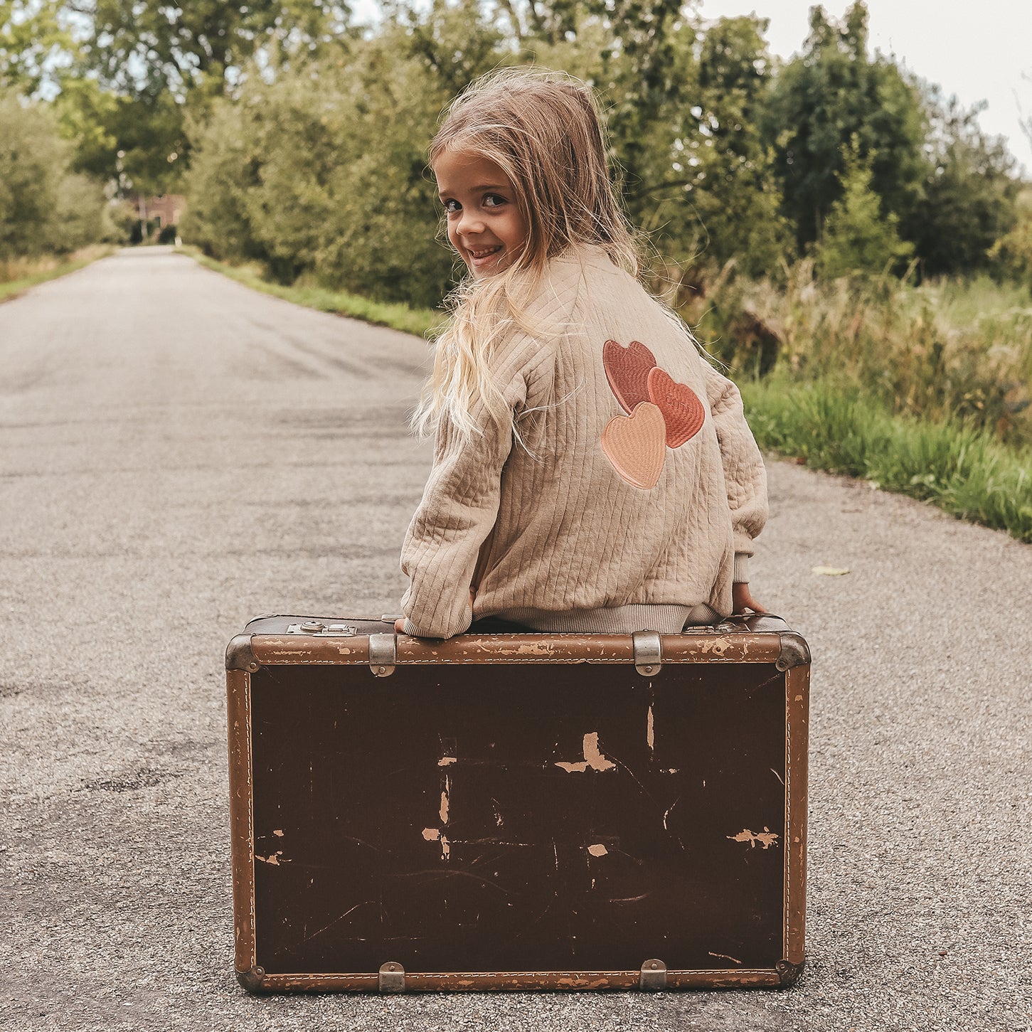 De voorkant is subtiel afgewerkt met een klein hartje op de borst, terwijl de achterkant wordt gesierd door drie grotere hartapplicaties in warme tinten. Eén van de hartjes bevat de tekst “cute”, wat het vest een extra speelse uitstraling geeft. De neutrale beige kleur maakt dit vest eindeloos combineerbaar met jurkjes, leggings, jeans of een bijpassende set. Perfect voor zowel dagelijks gebruik als een speciale gelegenheid.