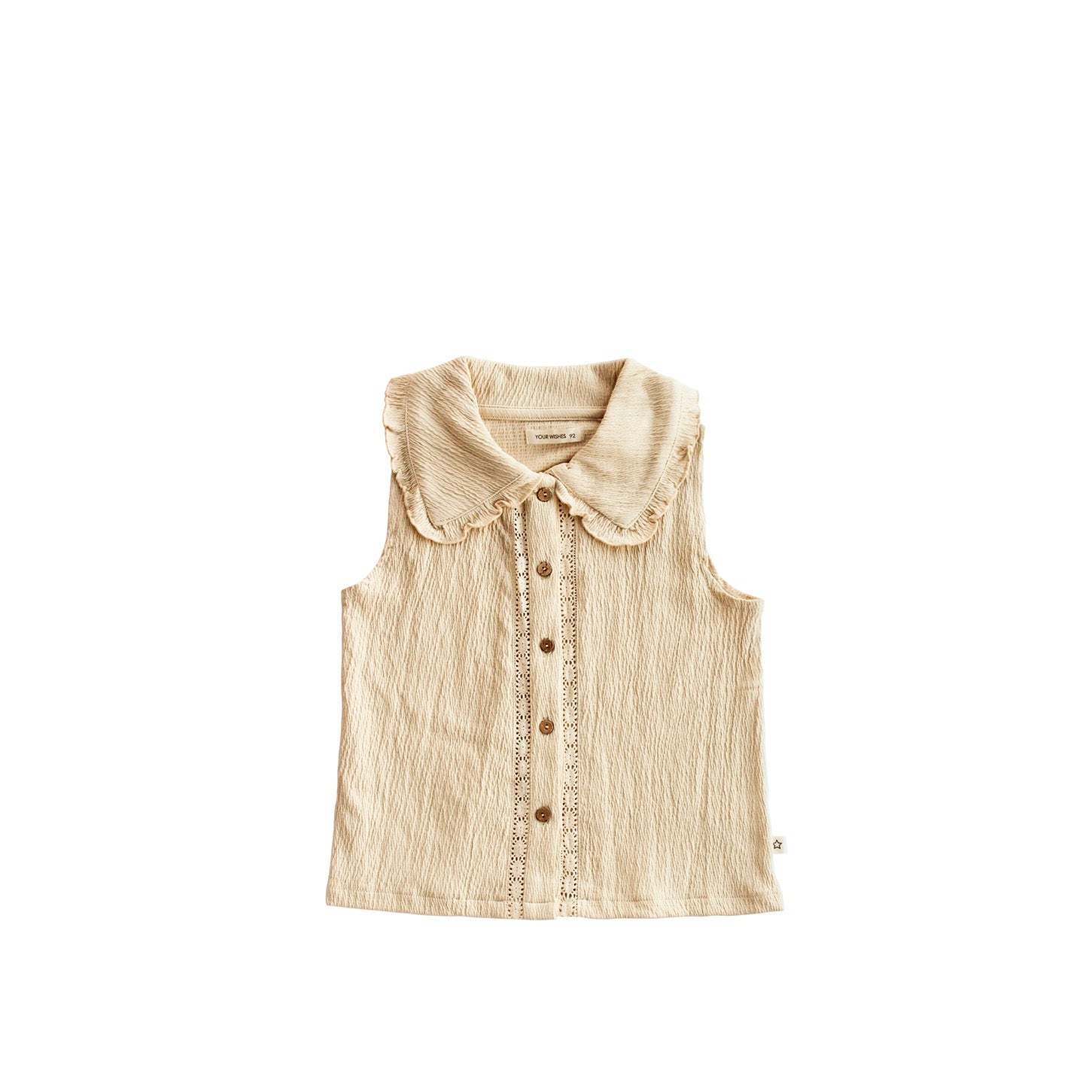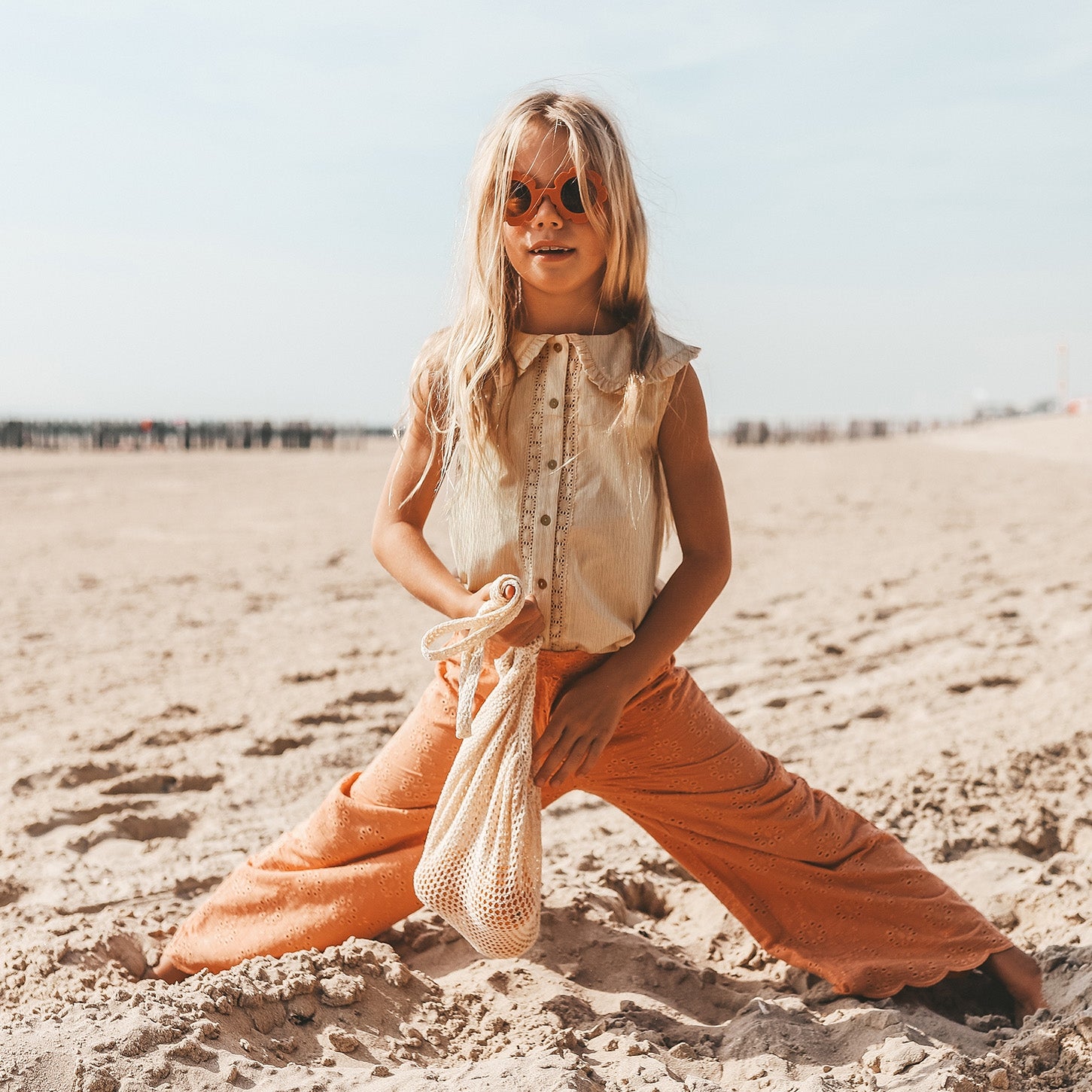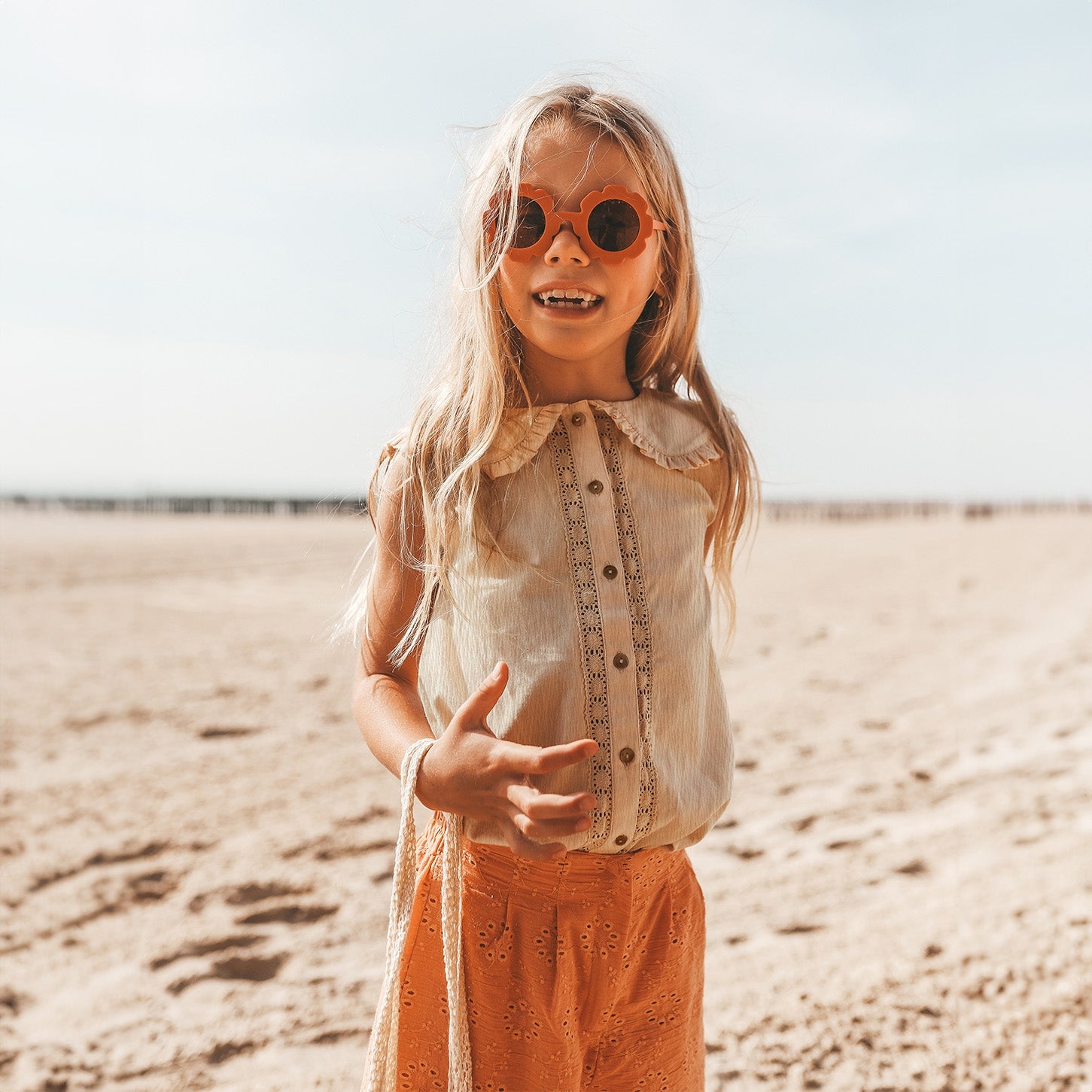 Enjoy the vintage vibes of the Roxy shirt, available from size 80 to 140. This top is made in a combination of cotton and elastane and finished with stylish details. The striking ruffled collar, full-length lace details and wooden buttons ensure that your child will look in style with the Roxy shirt. Shop the look and pair the Roxy top with the stylish Rianne pants or wear the top with the cool Dacia denim.