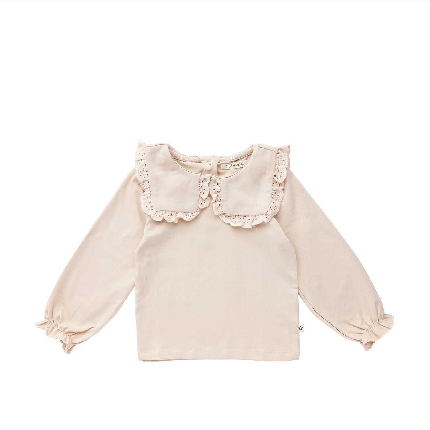With the Solid Collar Longsleeve, one thing is certain: your child will stand out when she wears this shirt! This longsleeve T-shirt is available from size 80 to 140 and is made of a combination of cotton and elastane. Of course, what stands out most about this shirt is the large collar and the ruffle details at the bottom of the sleeves. In addition, the Collar Longsleeve can easily be pulled over the head thanks to the snaps on the back, but it also ensures that the collar keeps its nice shape. This versatile item is a very nice basic to have in your child's closet! Another fine basic is the Stretch Denim Glitter Skirt and it looks great paired with the Solid Collar Longsleeve. Have you already added these items to your shopping cart?