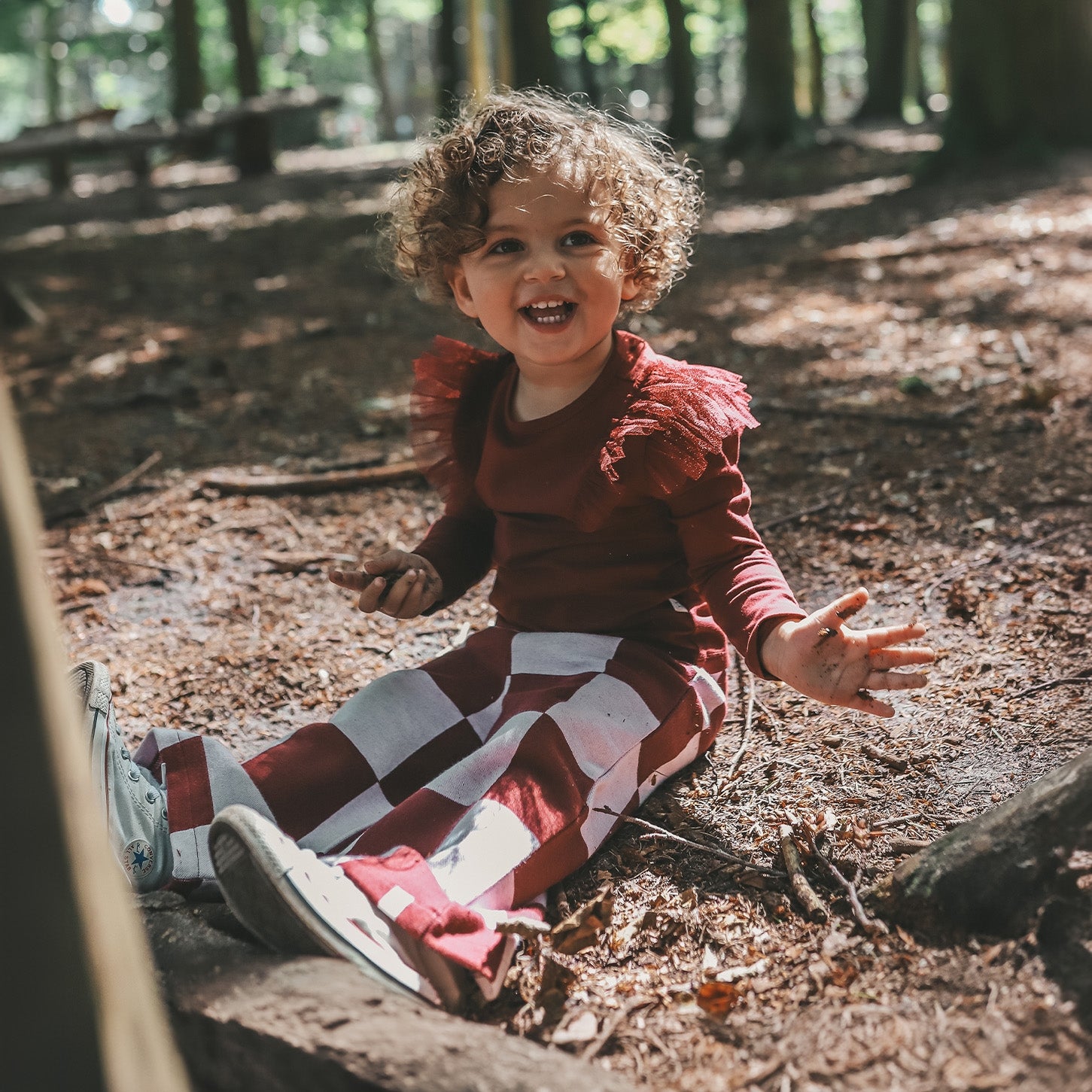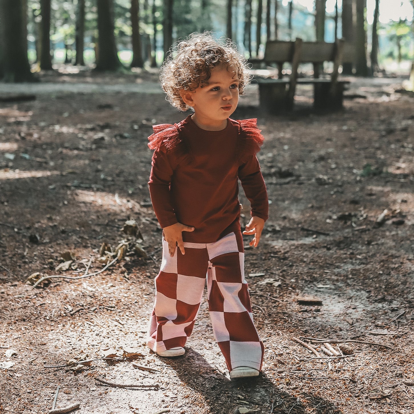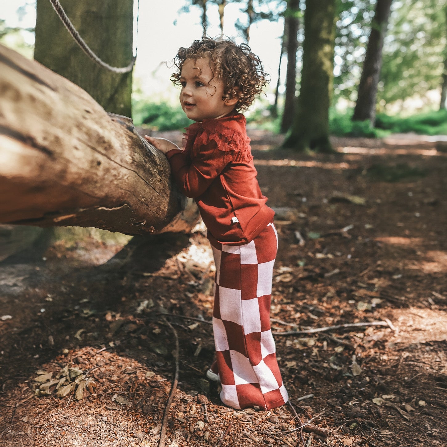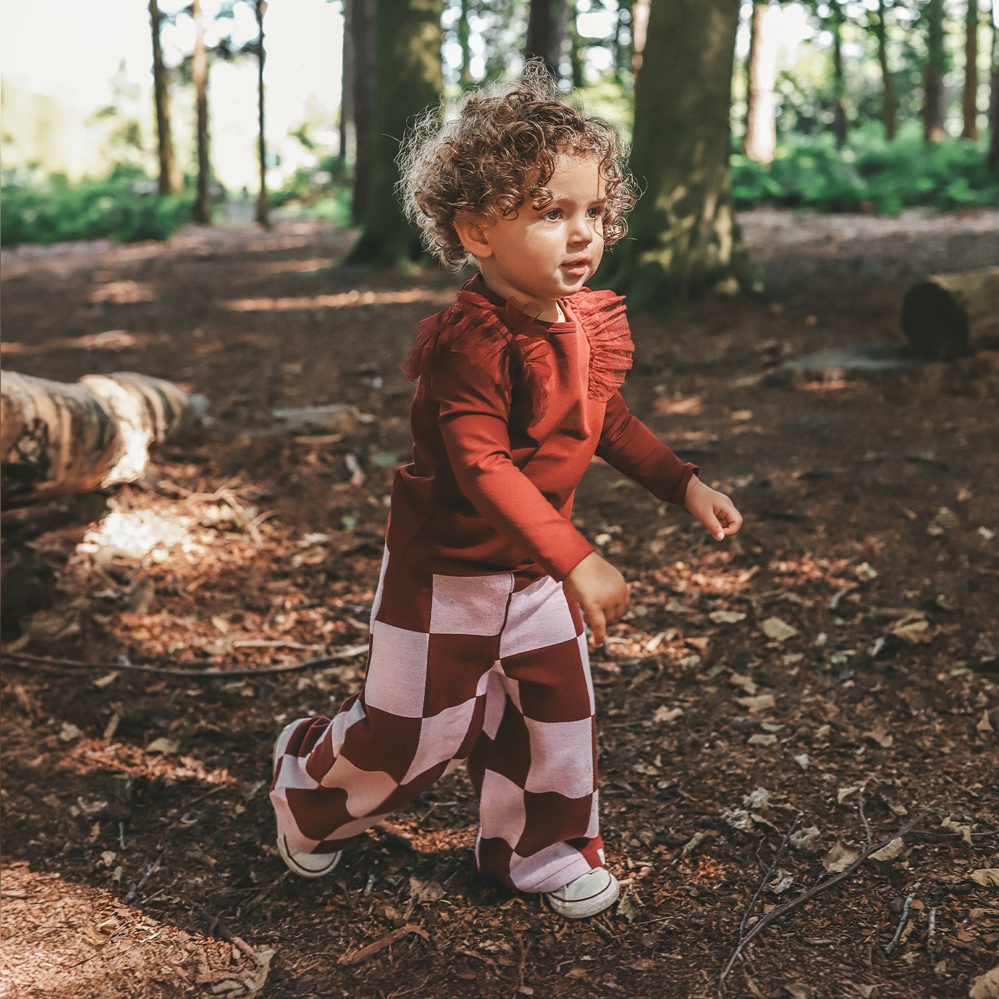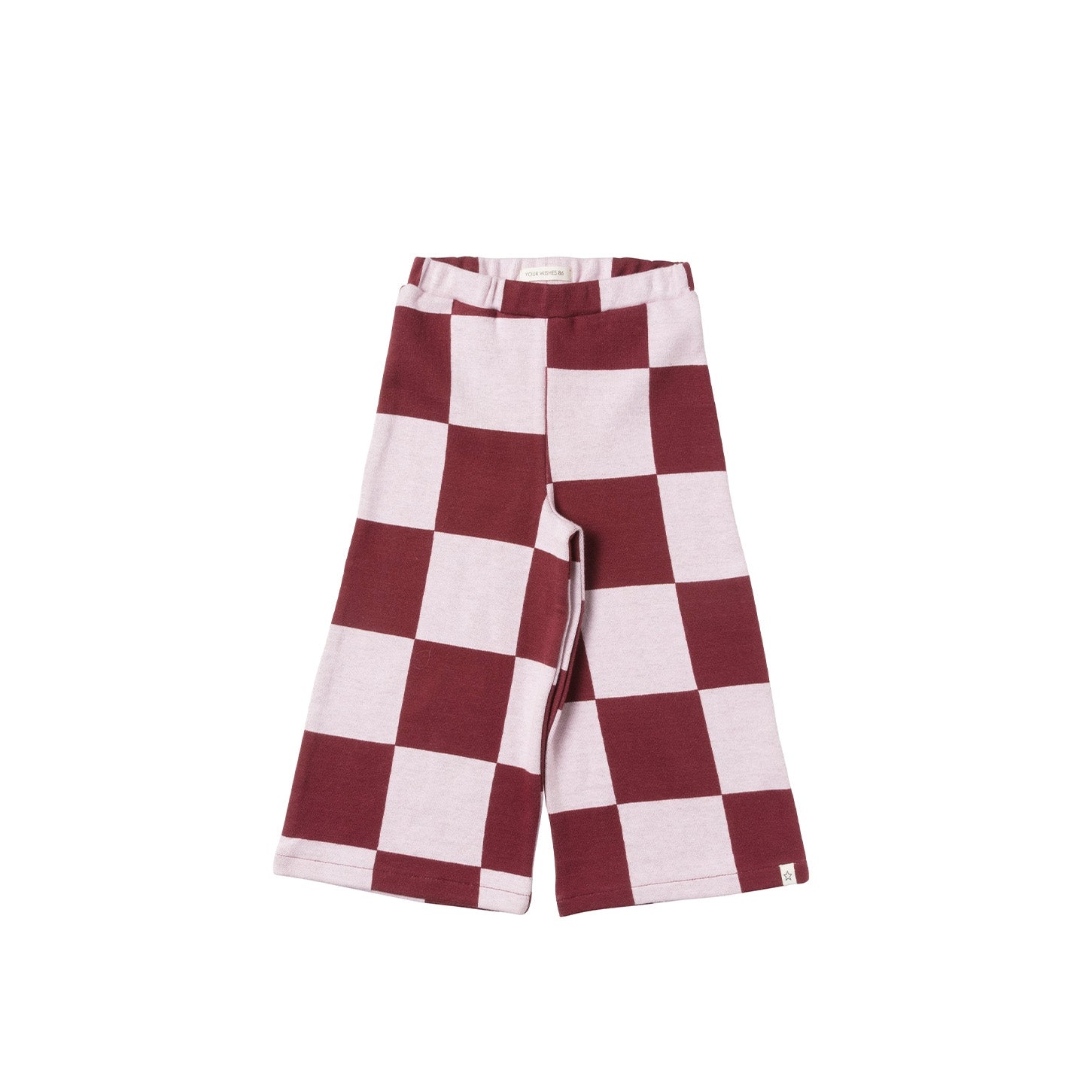 The Squares Wide Leg Pants is a must-have your child's closet. These pants offer comfort and style thanks to the composition of 95% cotton 5% elastane. The jacquard knit fabric is characterized by a soft and supple feel, with a knitted-in check pattern in shades of pink and bordeaux. This gives the pants a luxurious look and guarantees long-lasting color retention. Perfect for girls, the pants are ideal for going to school or other special occasions. Pair the Squared Wide Leg Pants with the Forever Young Oversized Sweater to complete the look. Have you added the item to your cart yet?