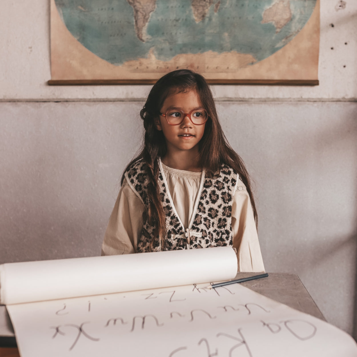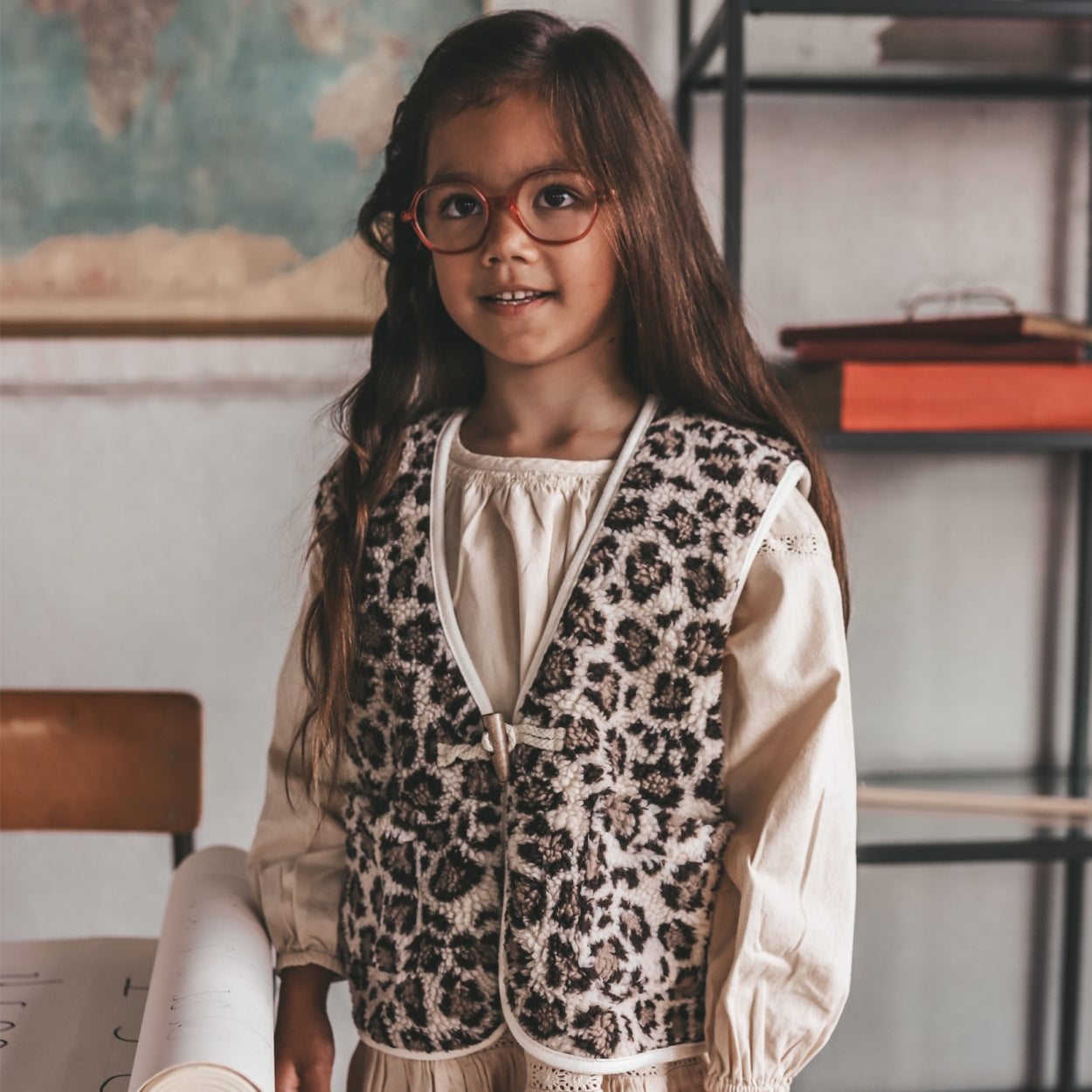 This leopard teddy gilet is easy to match with any outfit. The gilet features a wood string closure on the front. A wonderfully soft item!