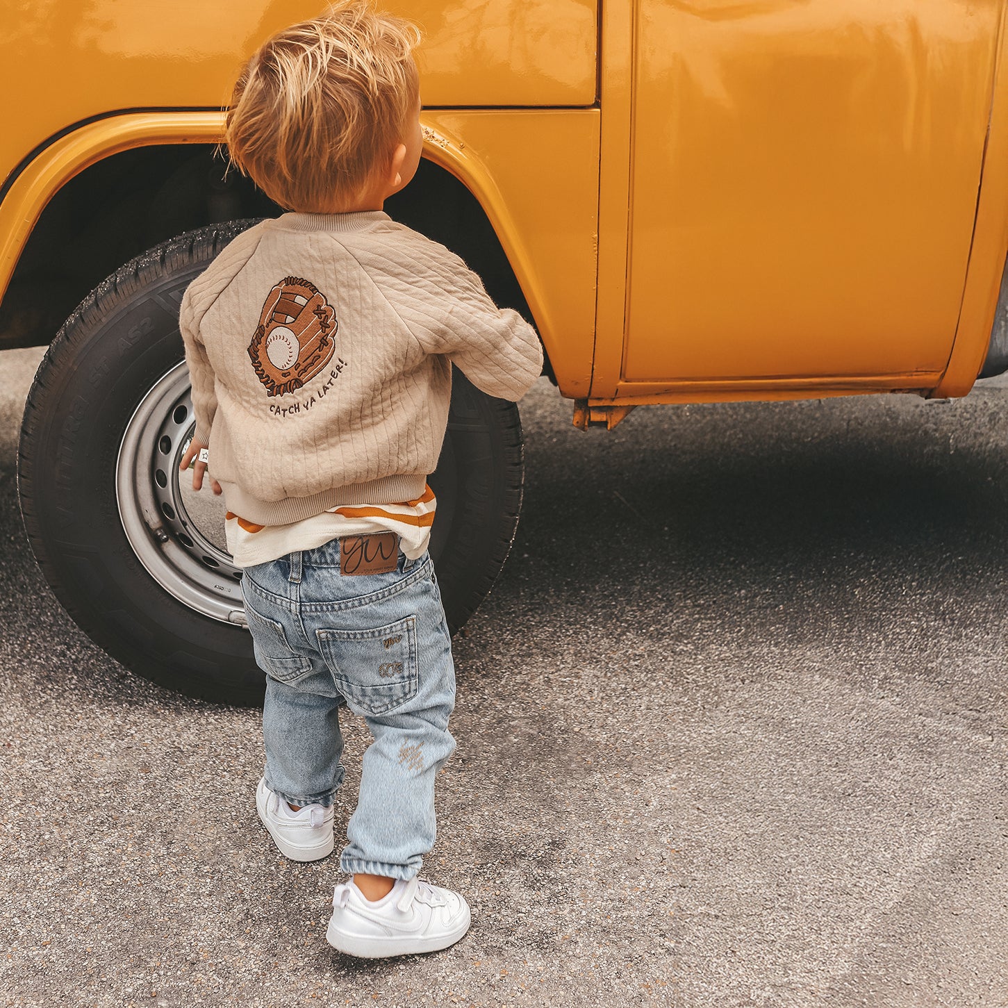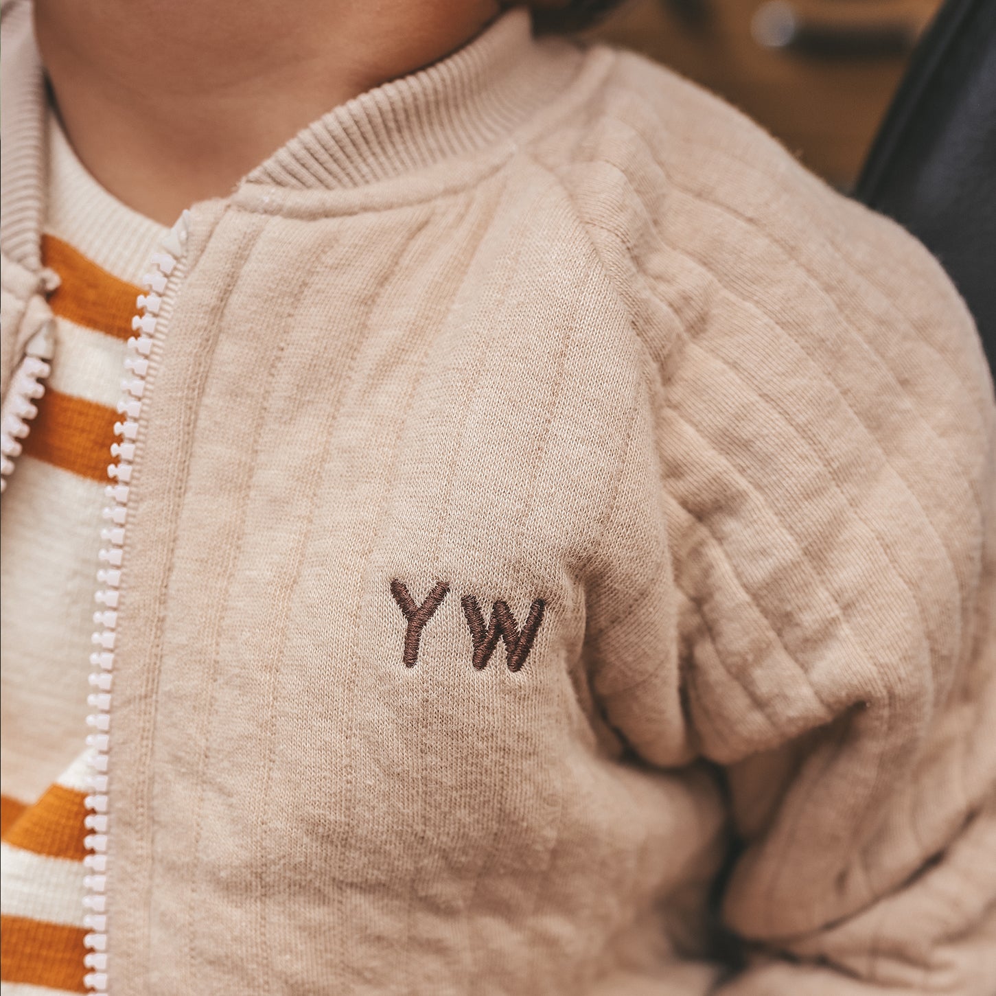 Dit licht gewatteerde jasje is uitgevoerd in een doorgestikte kwaliteit met verticale quilting, wat zorgt voor een moderne en verfijnde look. De ritssluiting aan de voorkant maakt het jasje praktisch en gemakkelijk in gebruik, terwijl de ribboorden bij de hals, mouwen en onderzijde zorgen voor extra comfort en een mooie pasvorm. De subtiele “YW” borduring op de borst wordt gecombineerd met een opvallende baseball borduurprint met de tekst “Catch ya later!”, wat het jasje een speelse, sportieve twist geeft. Perfect als tussenjasje in het voorjaar of als extra laag op frisse zomeravonden.