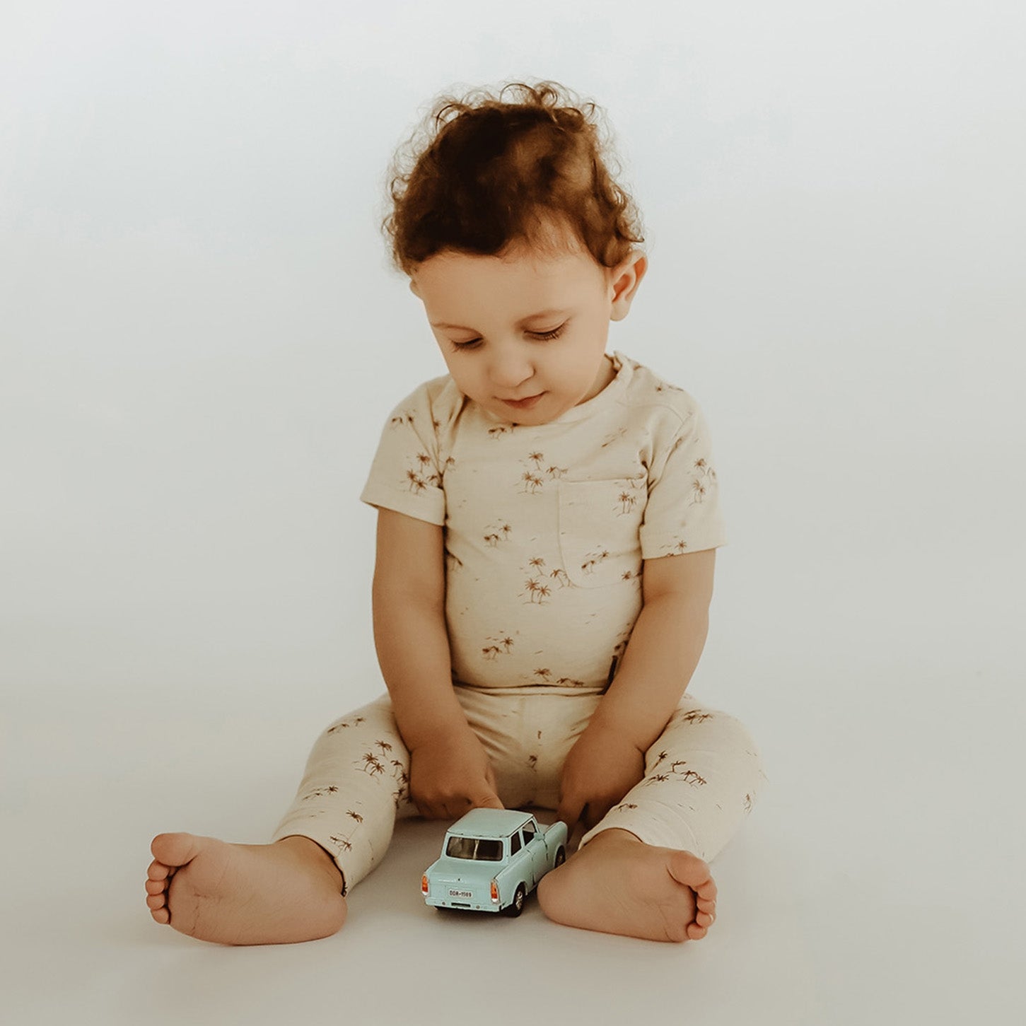 Het Calle newborn broekje is verkrijgbaar vanaf maat 50 tot 74 en uitgevoerd in een combinatie van katoen en elastaan. Hierdoor krijg je een heerlijk zachte stof met veel rekbaarheid, waardoor het broekje perfect rond de billen en benen van jouw kindje aansluit. Het Calle broekje heeft daarnaast een elastische tailleband met een extra trekkoord, zodat je de perfecte pasvorm kunt aangeven. De print van het broekje is gebaseerd op een ontwerp van een van onze collega’s en is daarom helemaal uniek! Het Calle broekje is een hele leuke combinatie met het Poe T-shirt of het Paulo T-shirt! Heb jij deze items al in het winkelmandje toegevoegd?