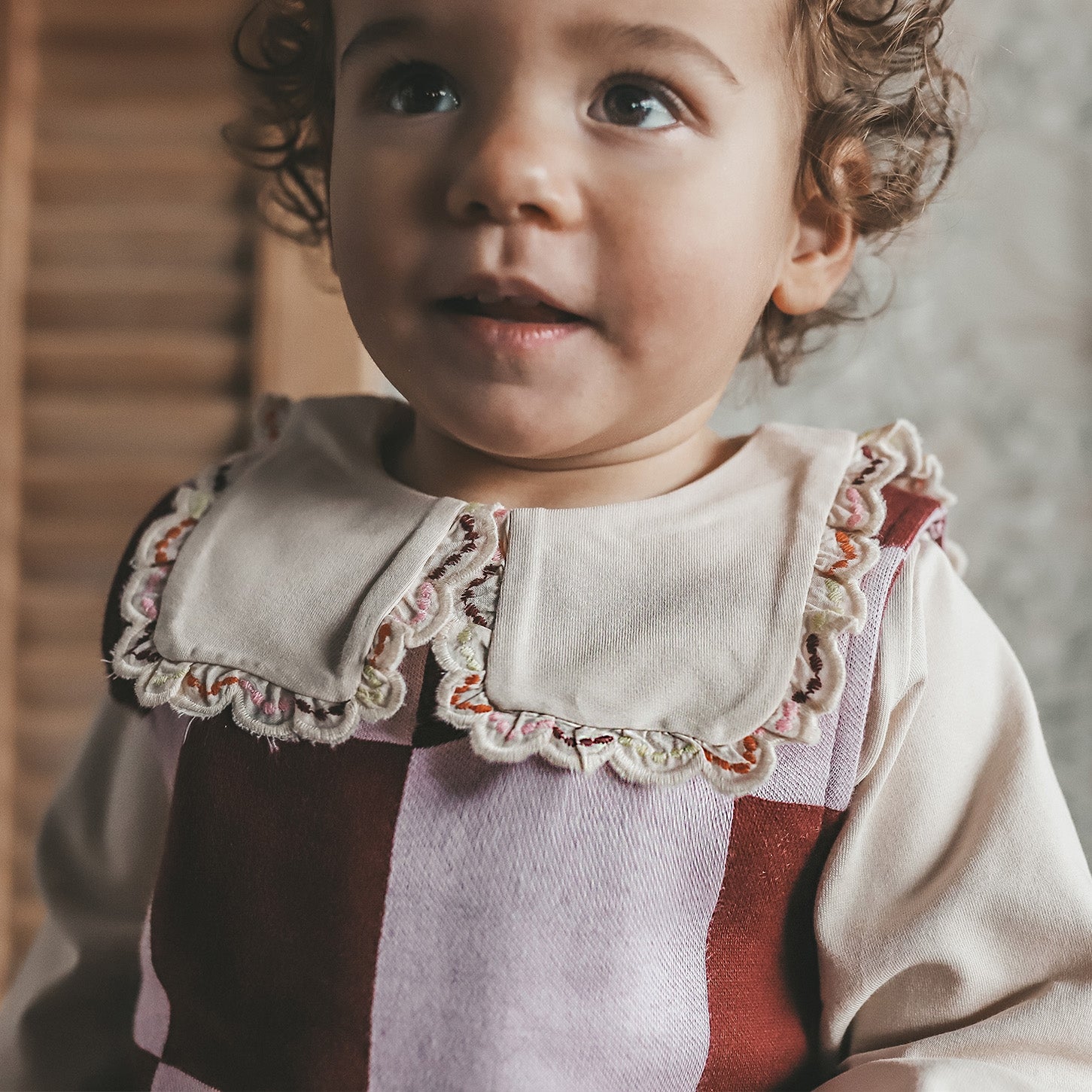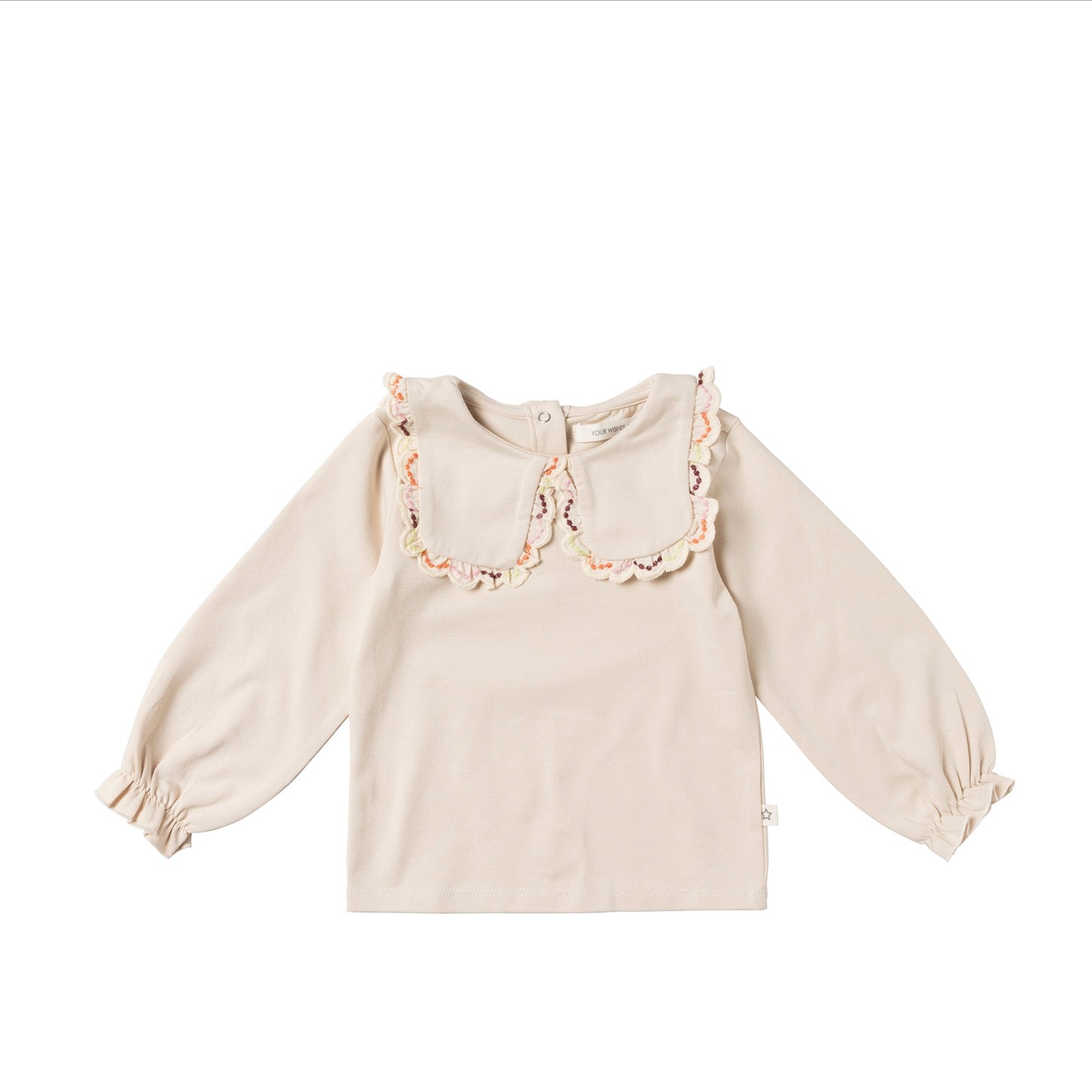 De Confetti Collar Longsleeve maakt van elke outfit een feestje en is verkrijgbaar vanaf 80 tot 140. Het T-shirt met lange mouwen is uitgevoerd in een combinatie van katoen en elastaan en sluit hierdoor goed aan op het lichaam van jouw kindje. Wat het meest opvalt aan de Confetti Collar Longsleeve is natuurlijk de grote kraag, afgewerkt met geborduurde details in verschillende kleuren. Het shirt kan ook makkelijk over het hoofd heen aangetrokken worden dankzij de drukknopen achterop de rug. Daarnaast zijn de uiteinden van de mouwen afgewerkt met elastiek, waardoor er een subtiel ruffle effect ontstaat. De Confetti Longsleeve is leuk om op zichzelf te dragen met bijvoorbeeld de Stretch Denim Wide Leg Glitter Jeans, maar ook leuk om als extra laagje te dragen met de Squares Pocket Dress. Zo laat je de kraag écht mooi tot zijn recht komen. Heb jij de feestelijke Confetti Collar Longsleeve al aan je winkelmandje toegevoegd?