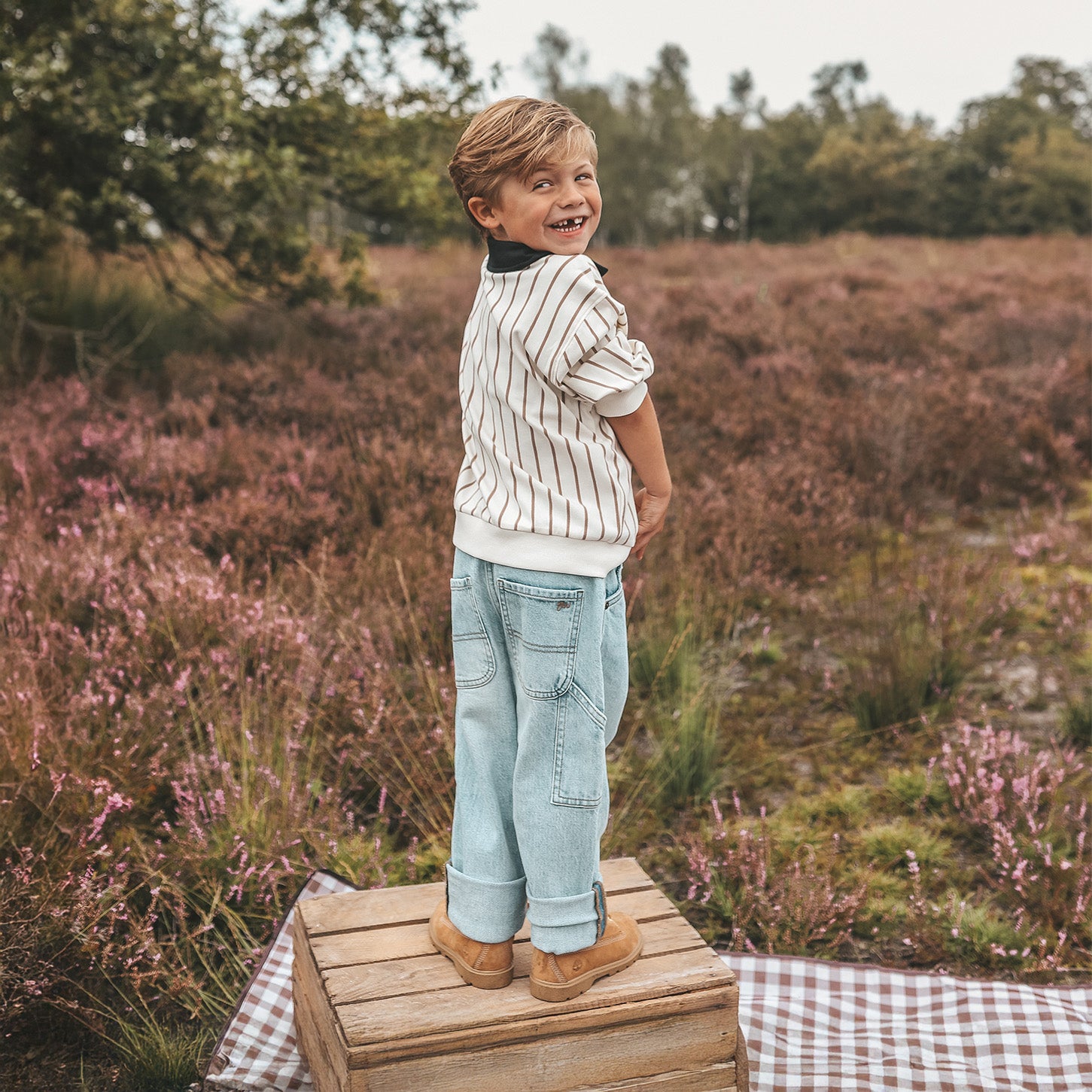 De stoere wassing van de Denim Worker Jeans is te danken aan de speciale behandeling die dit item heeft gekregen. Het kan hierdoor zijn dat de jeans een beetje afgeeft, dus zorg dat je dit item apart wast. We raden je daarom aan de jeans binnenstebuiten te wassen. Zo weet je zeker dat jouw kindje zo lang mogelijk van deze fijne Denim Worker Jeans kan genieten en hij het mooist blijft om te dragen!