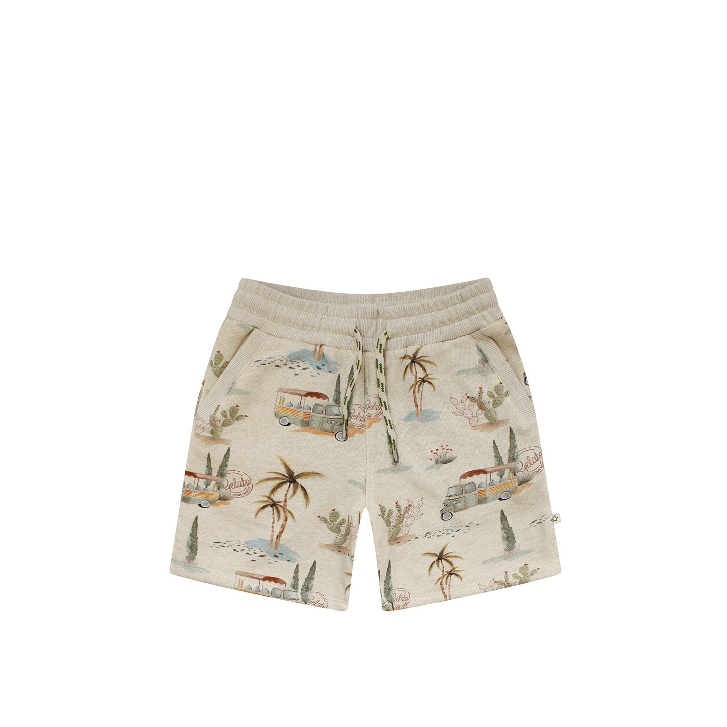 Deze short heeft een zomerse print met illustraties van palmbomen en Italiaanse ijskarretjes. De short heeft steekzakken en is voorzien van een koord in de tailleband waarmee je de short kan verstellen naar wens.