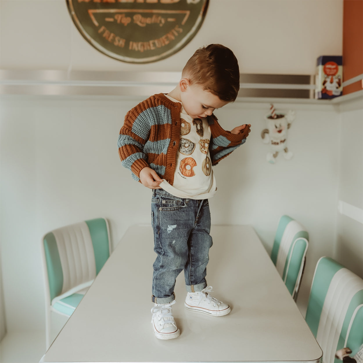 * Ons model Josh is 2 jaar oud en draagt maat 86 en ons model Jip is 6 jaar oud en draagt maat 116.