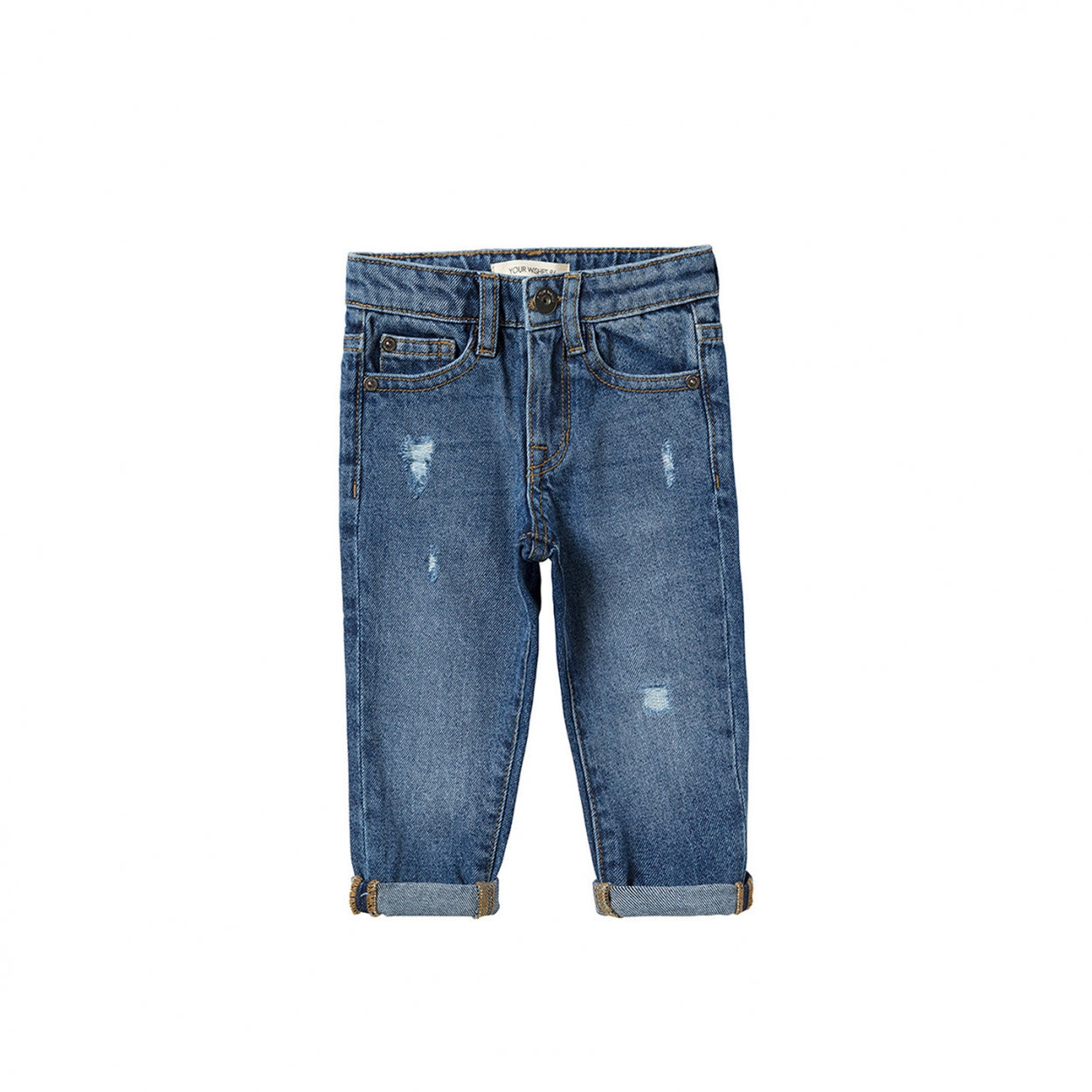 De Floyd spijkerbroek is de ideale basic voor dit seizoen en verkrijgbaar vanaf maat 74 tot 152. De spijkerbroek heeft een stoere wassing en hier en daar damages die het geheel een stoere look geven. De broek sluit door middel van een rits met knoop en aan de voorkant zitten nog twee steekvakken met in de rechter broekzak nog een extra klein steekvakje. De achterkant van de broek is nog afgewerkt met twee kontzakken. Heb jij de Floyd spijkerbroek al toegevoegd aan je winkelmandje?
