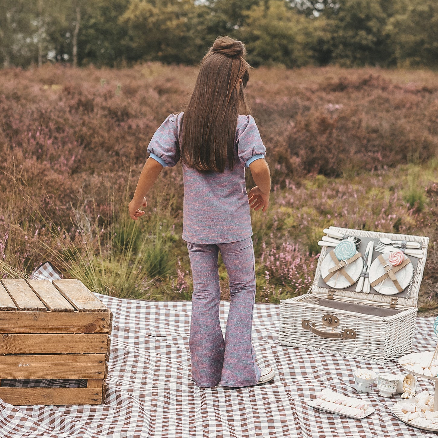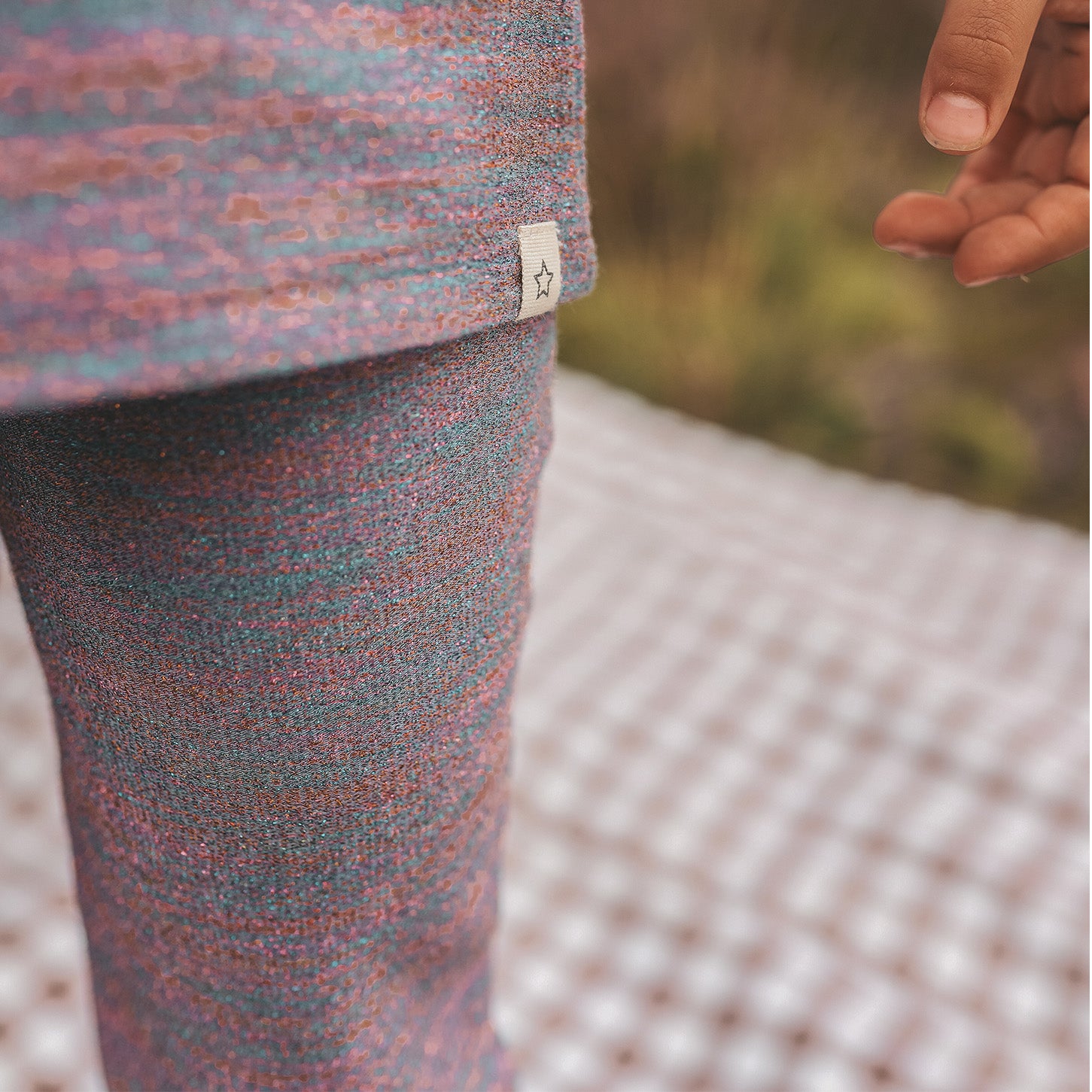 De flared fit en de elastische tailleband maken deze legging niet alleen trendy, maar ook praktisch voor dagelijks gebruik. De paarse kleur en de subtiele gltiter zorgen voor een modieuze en feestelijke uitstraling, perfect voor speciale gelegenheden of een speelse look op een zonnige dag.