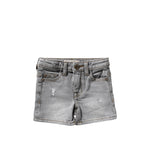 De short is uitgevoerd in een zachte grijze denim wassing en afgewerkt met subtiele damaged details voor een stoere, moderne uitstraling. Dankzij de soepele denimkwaliteit voelt de stof prettig aan op de huid en is deze jongens short ideaal voor warmere dagen.