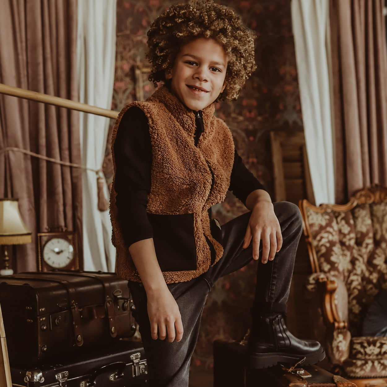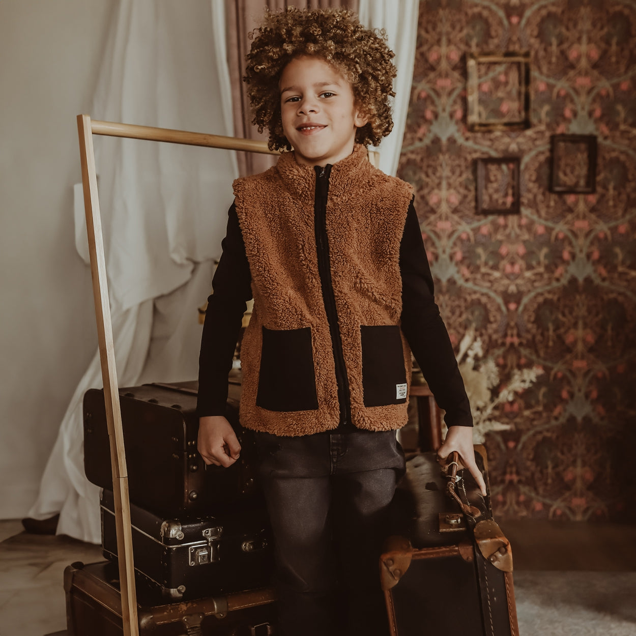 Als je op zoek bent naar een veelzijdig item, look no further! Het Huxly teddy gilet is precies wat je kindje nodig heeft en is verkrijgbaar vanaf maat 80 tot 146/152. Dit gilet heeft een heerlijk zachte teddystof aan de buitenkant en is afgewerkt met twee zwarte steekvakken en een ritssluiting. Het gilet is gevoerd, waardoor de Huxly tijdens de dagen waar je nog net geen jas nodig hebt is, gebruikt kan worden als een bodywarmer! Maar het Huxly gilet is ook perfect om op een shirt met lange mouwen te dragen om nét dat beetje meer warmte toe te voegen. Perfect item dus om meerdere seizoenen door te dragen. Het gilet is dan ook niet zonder reden een van de Your Wishes favorieten van dit seizoen!